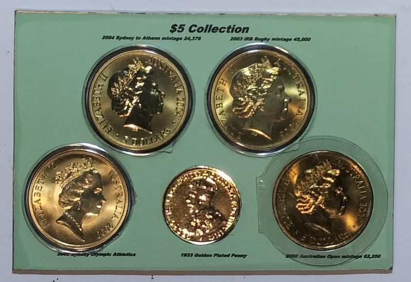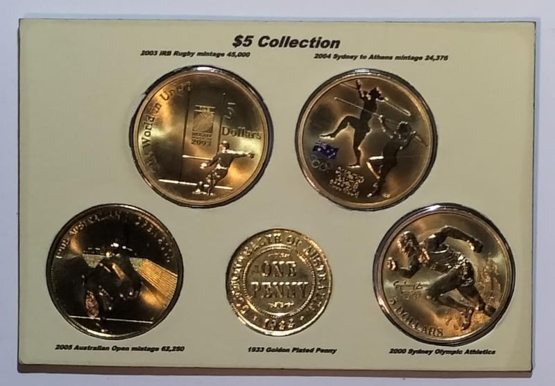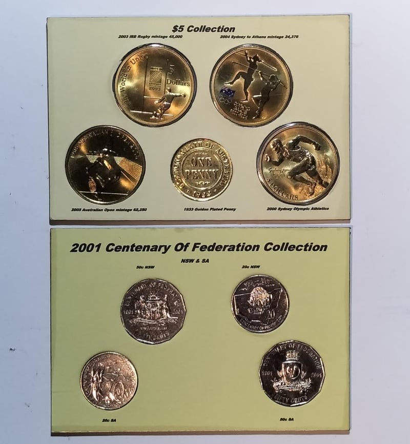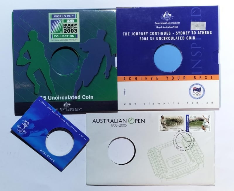 Two Parts In Total: $5 Collection - 2000 Sydney Olympic Athletics; 2003 Irb Rugby; 2004 Sydney To Athens; 2005 Australian Open. Together With 2001 Centenary Of Federation (Nsw&Sa)