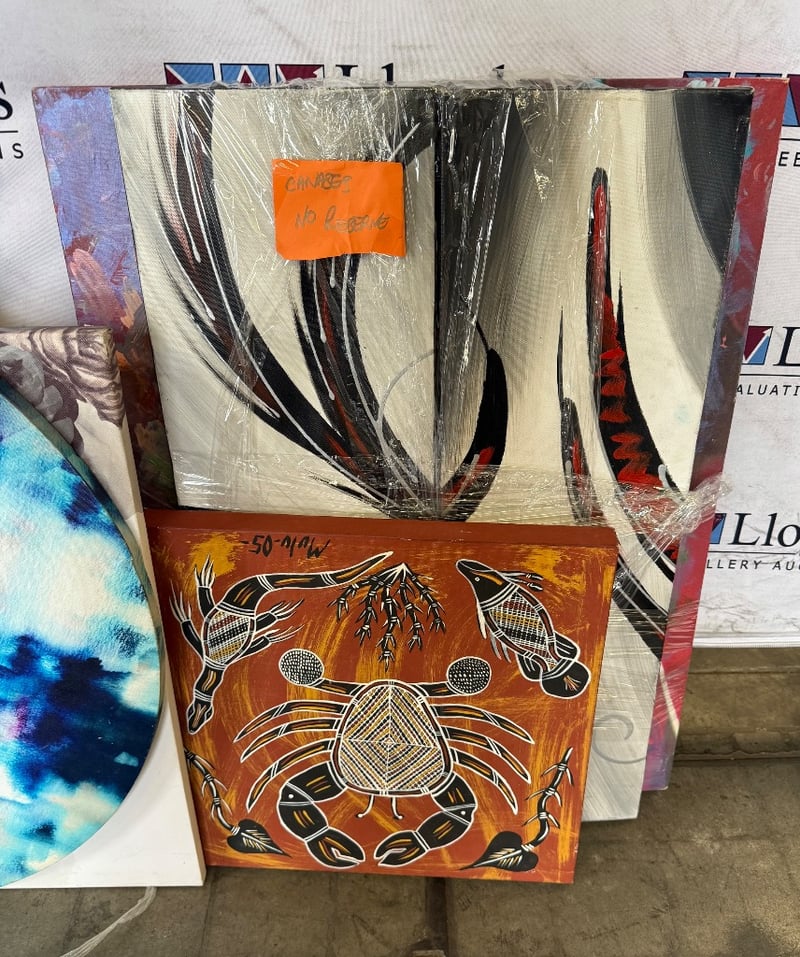 Assorted Mixed Media Artwork On Canvas Note: Sold As Lot