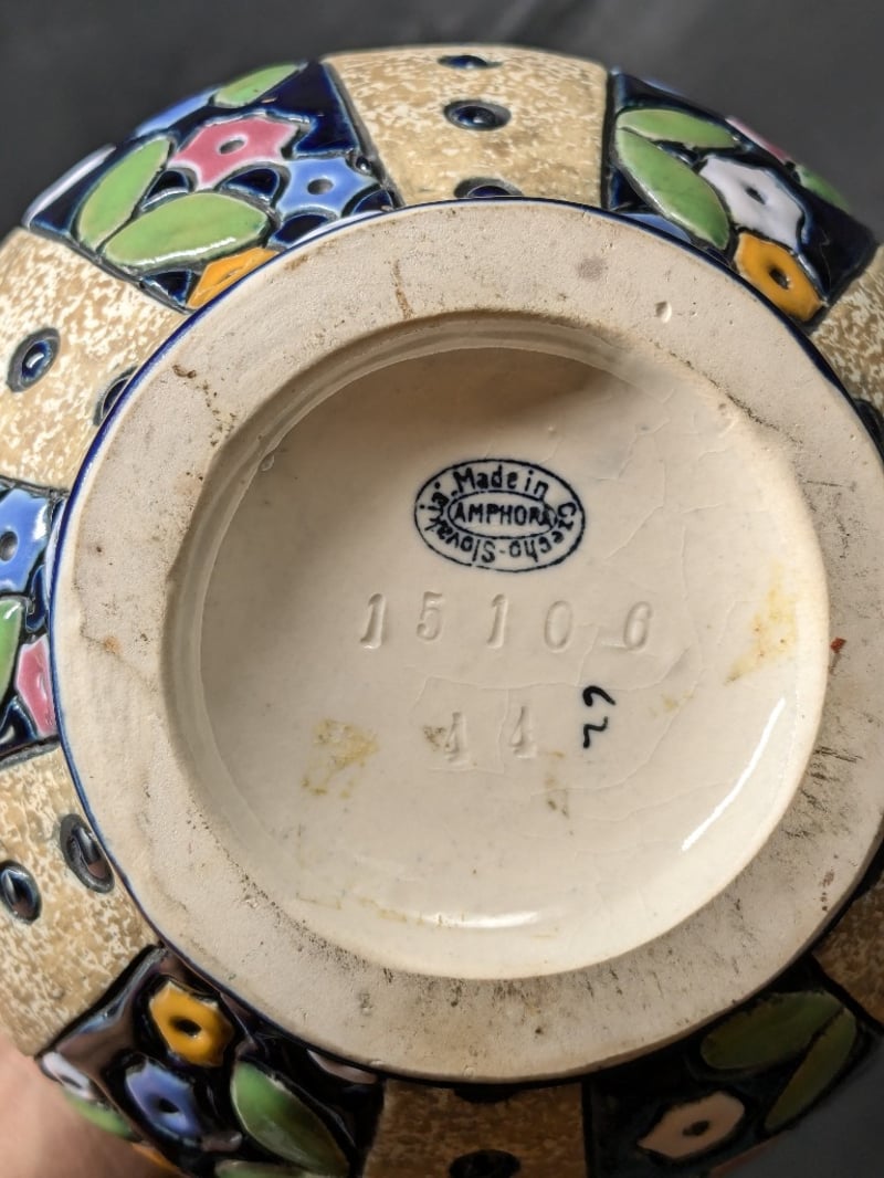 AMPHORA CERAMIC VASE Item Size: Height: 27cm, Width: 16cm, Depth: 16cm Made In Czech Slovakia Condition: Good - Refer To Images 585027+2