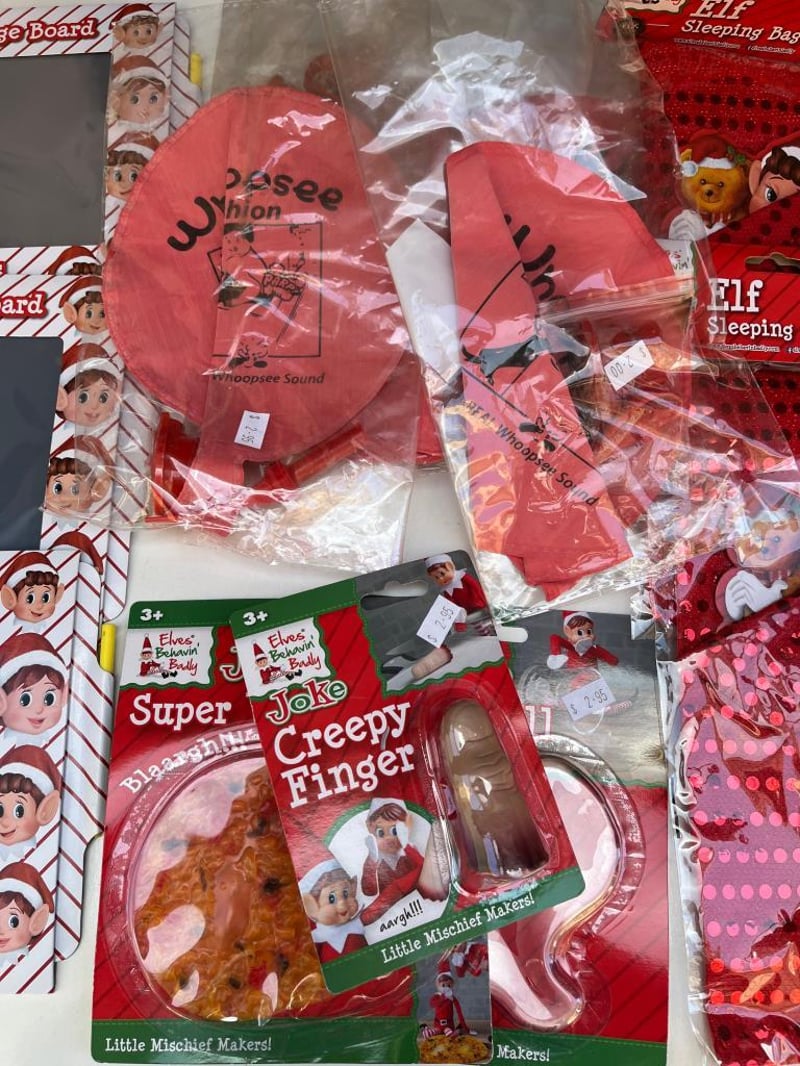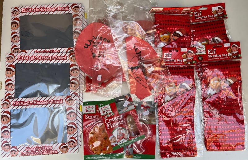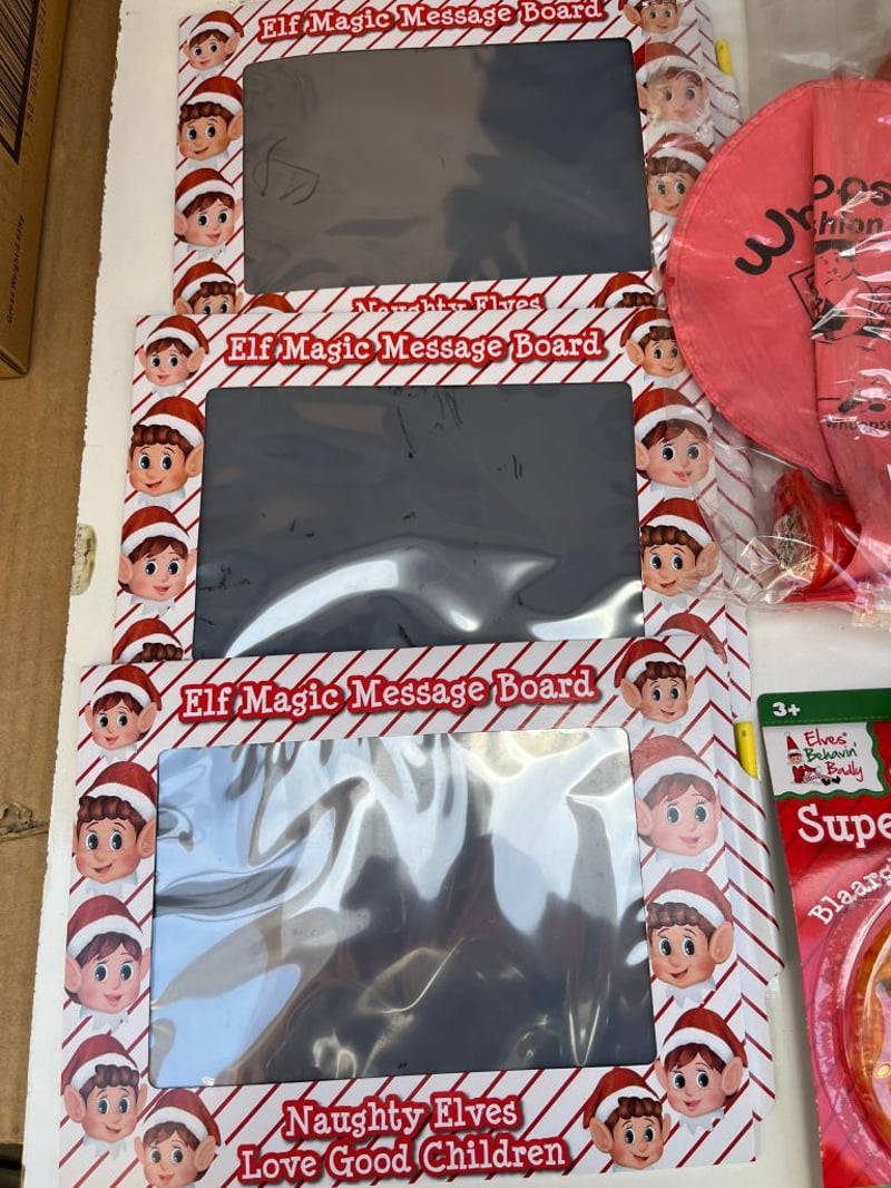 Ellf on the Shelf Accessories, including Magic Boards, Sleeping Bags, Whoopie Cushions, Pranks SOLD AS 1 LOT