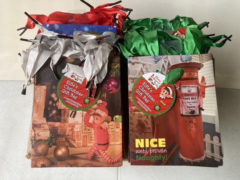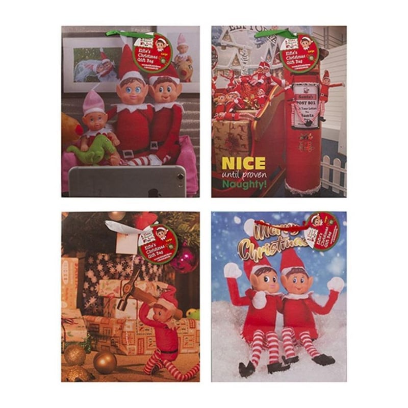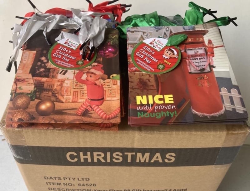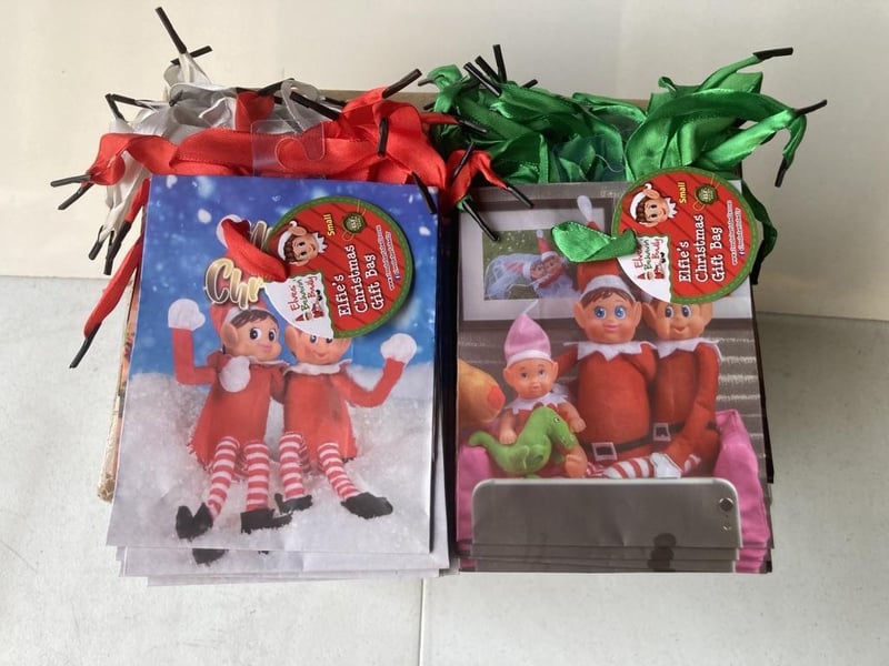 Box of 120 Xmas Elf Gift Bags, 4 assorted, measure 110mm, 137mm x 62mm SOLD AS 1 LOT