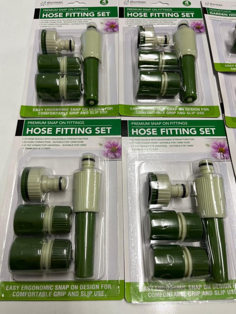Box of Hose Fittings, all brand new, includes nozzles, connectors, tap adaptors, stopper connectors SOLD AS 1 LOT