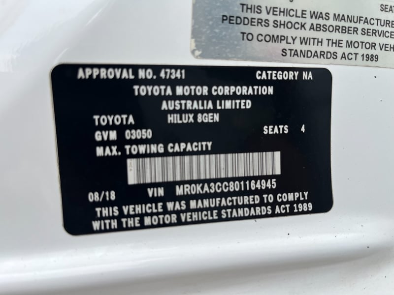 2018 Toyota Hilux 4X4 Space Cab Year: 2018 Make: Toyota Model: Hilux Odometer Indicated: 222,155kms Engine: 2.8L Transmission: Auto Fuel: Diesel Seats: 4 Colour: White GVM: 3450kgs Price Guide - $27,350 - $30,900 (Based on Unmodified Vehicle) VIN #: MR0KA3CC801164945 Engine No.: 1GD4542467 (as per PPSR) Description: 2 x Toolboxes, UHF, Bull Bar, Spotlights, ROPS lights, Inverter in toolbox. Sold as is, Sold Unregistered. Location: 3/263 Connors road, Paget, Mackay, 4070 Contact: Bradley Taylor - 0473425094 - [email protected]