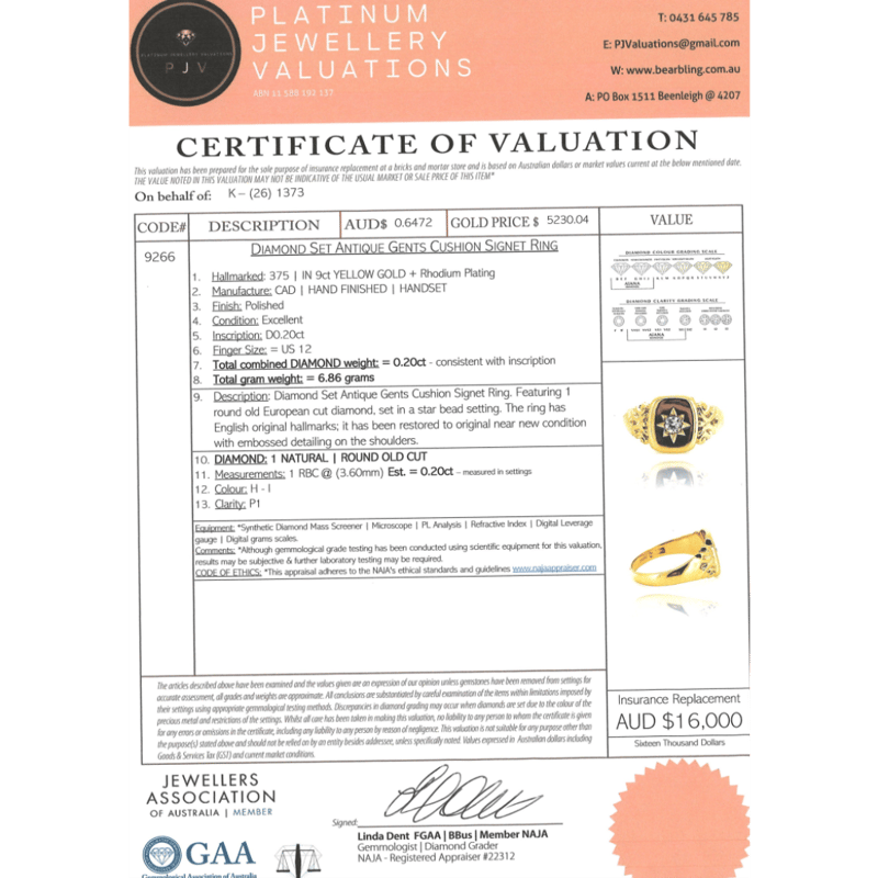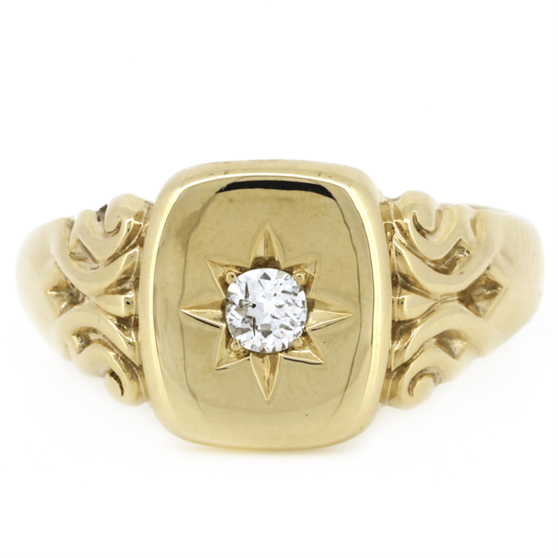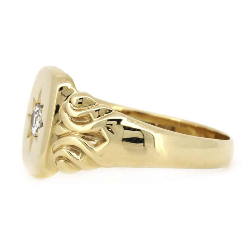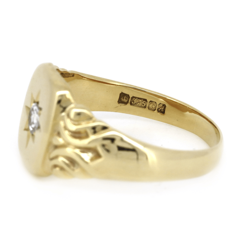 9K YELLOW GOLD AND 0.20CT DIAMOND, SIGNET RING.