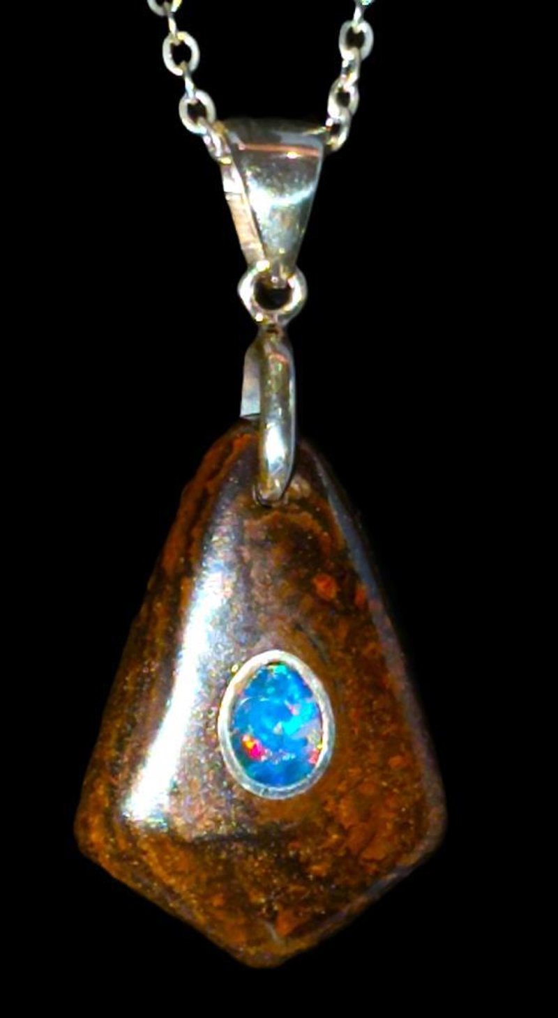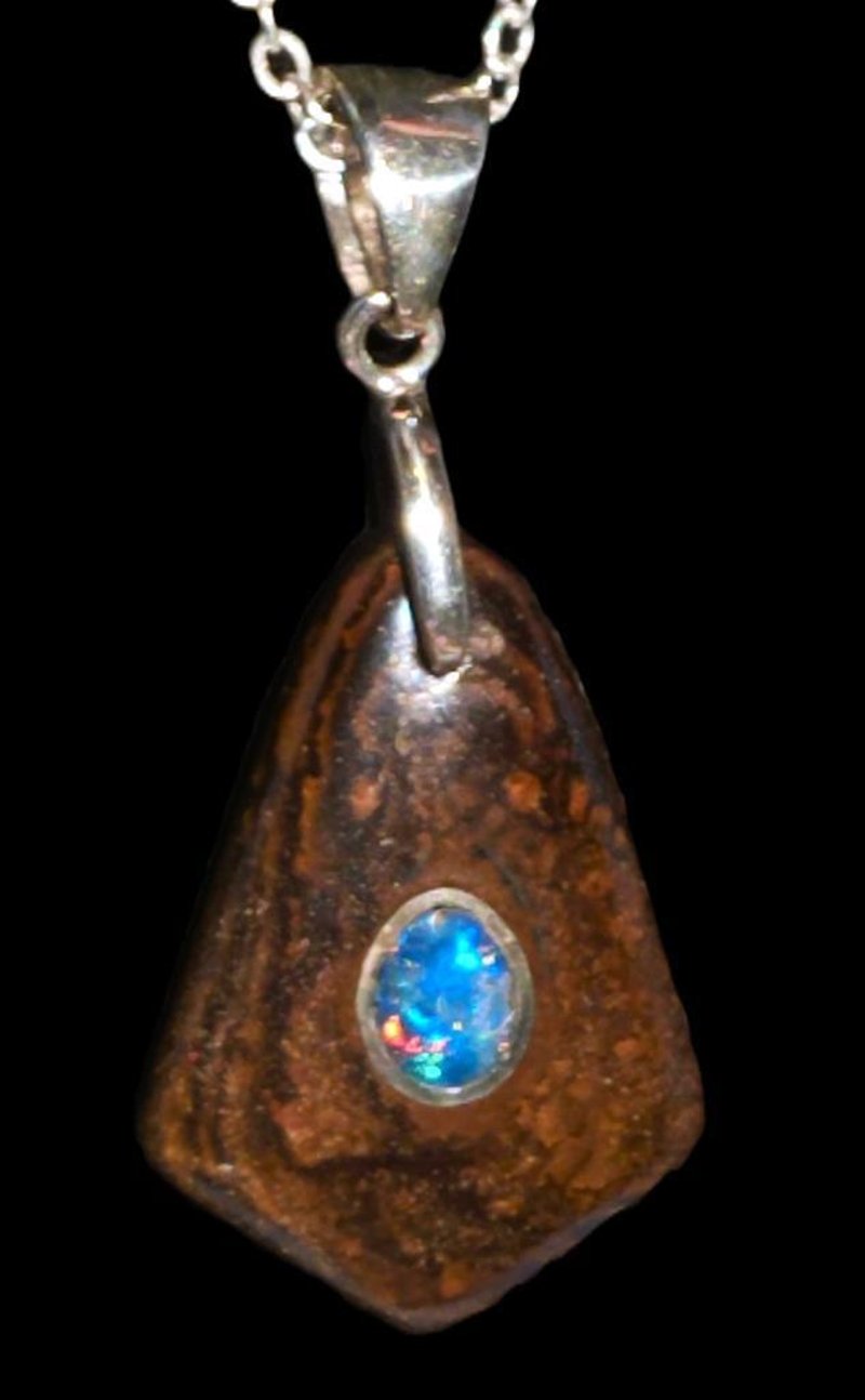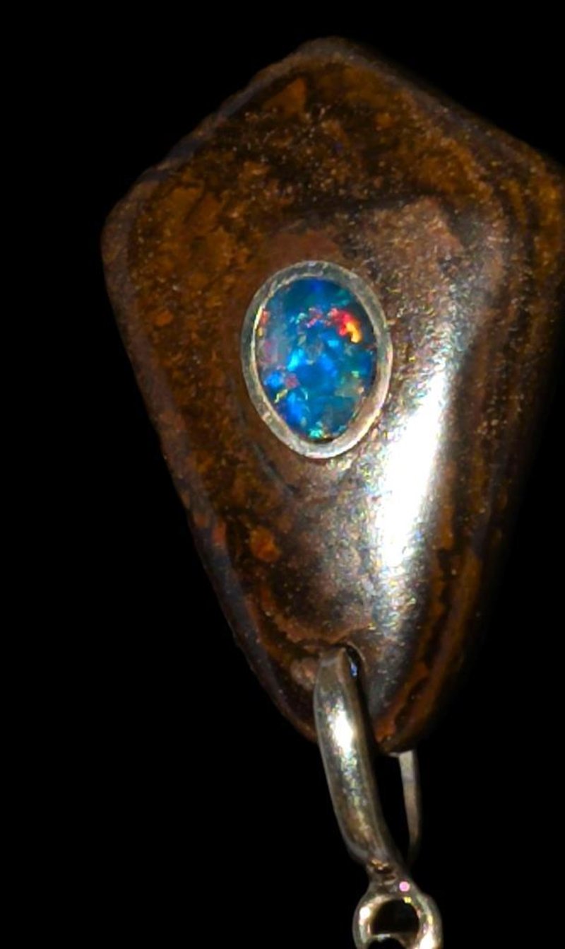 25.9 CARATS BOULDER OPAL AND LIGHTNING RIDGE OPAL PENDANT Comes With A Silver Chain 0586253+11