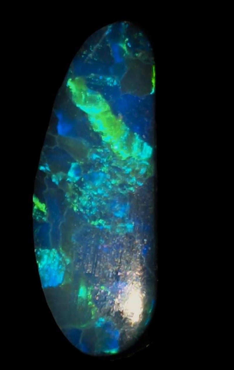 5 CARATS BLACK OPAL DOUBLET FROM LIGHTNING RIDGE Dimensions: 18x7x4mms Bright Clean Face With Deep Colour And Ready To Set. Well Finished Classy Stone. 0586253+36
