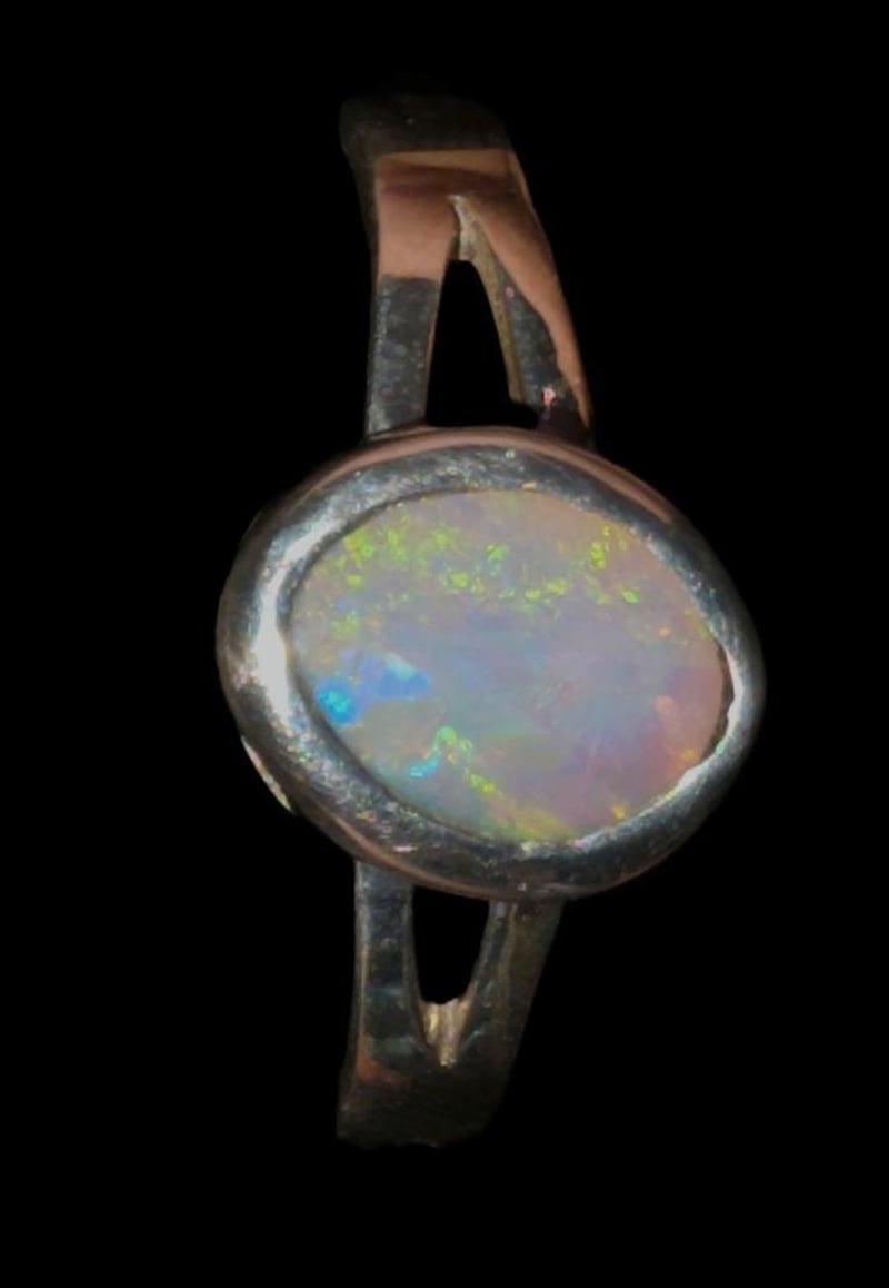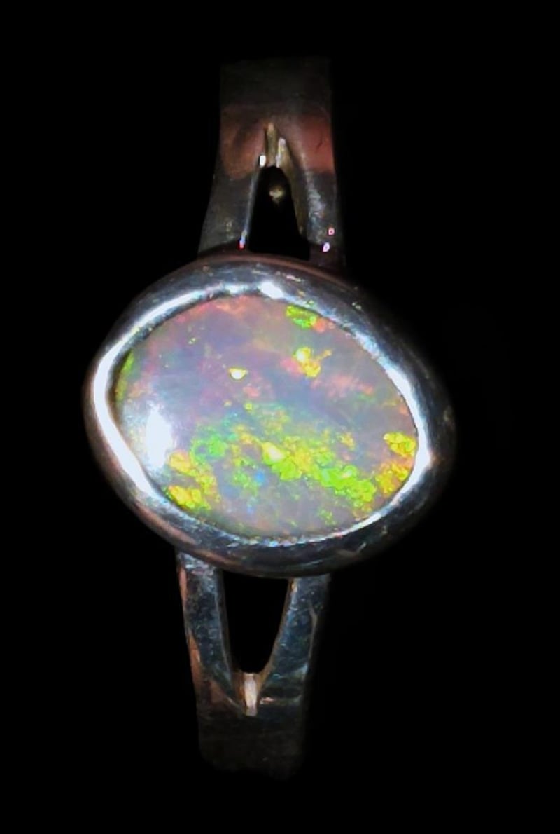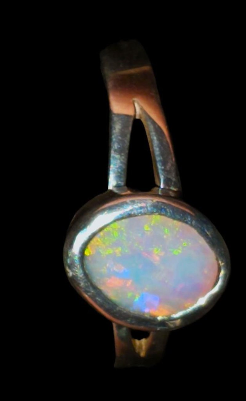 14 CARATS HAND MADE STERLING SILVER AND LIGHTNING RIDGE CRYSTAL OPAL MENS RING 0586253+40