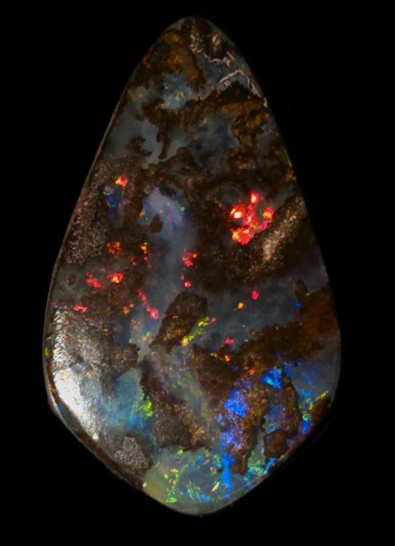 14 CARATS WINTON BOULDER OPAL Dimensions: 26x15x4mms Nice Stone With Reds Teals Greens Blues. 0586253+67
