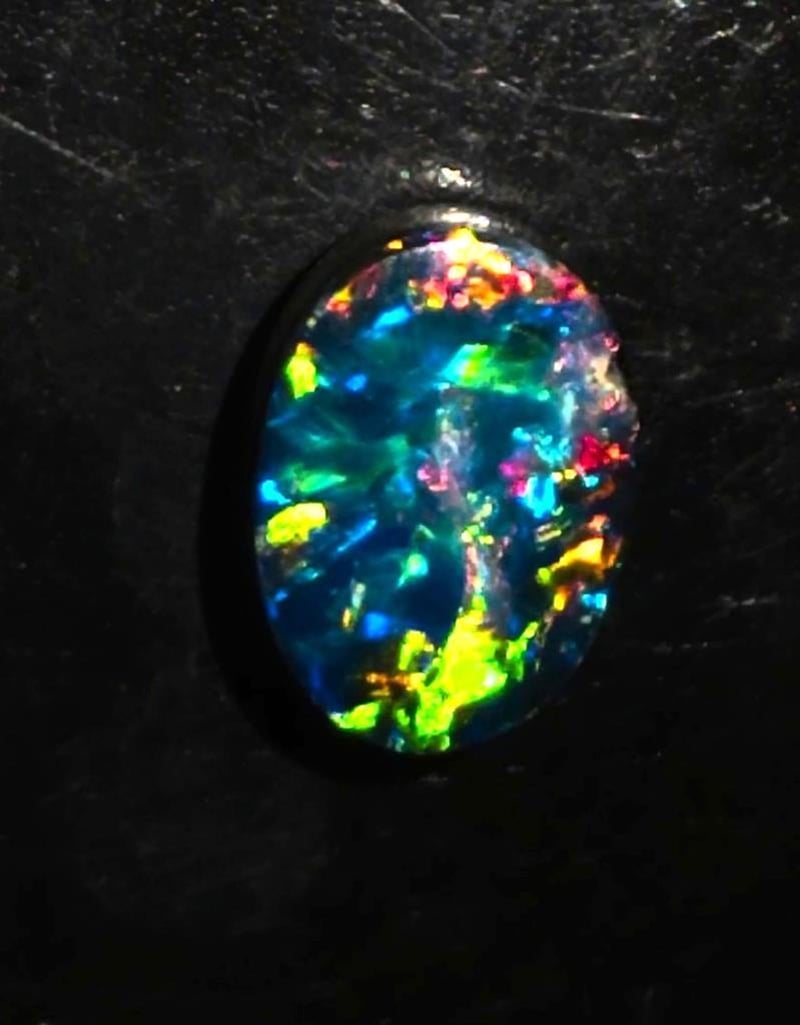 1.7 CARATS A1 BLACK OPAL DOUBLET FROM LIGHTNING RIDGE Dimensions: 8X6x3mms 4 From 5 Brightness With Gem Colour. 0586253+141