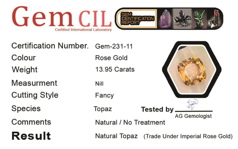 13.95 CARATS NATURAL IMPERIAL ROSE GOLD TOPAZ 13.95 Carats Natural Imperial Rose Gold Topaz Stone = Natural TopazWeight = 13.95 Carats Colour = Rose Gold Cut = Fancy Lustre = Excellent Treatment = Natural, No TreatmentQuality = Vvs (Premium)Note = Precise Custom Cut (Not Commercial)This Natural Topaz Has High Level Of Pleochroism, So Color Intensity Can Vary Upon Different Light Conditions. Condition: Good - Refer Images 0488413+11