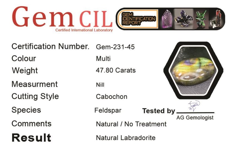 47.80 CARATS NATURAL LABRADORITE 47.80 Carats Natural Labradorite Stone = LabradoriteWeight = 47.80 CaratsColour = MultiCut = CabochonTreatment = No, Natural Quantity = 1,, Condition: Good - Refer Images 0488413+45