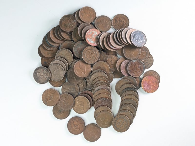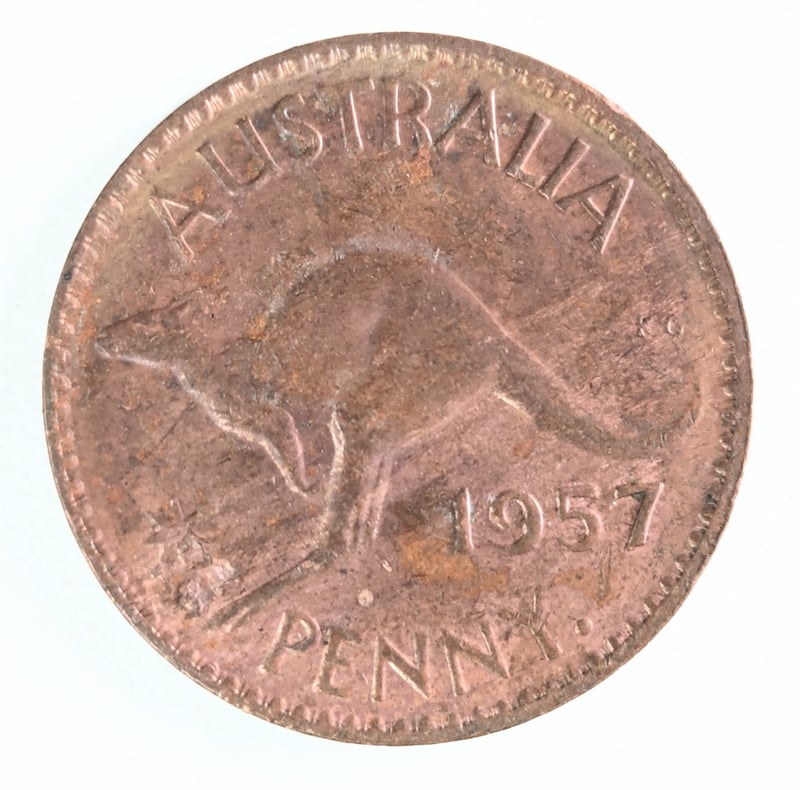 ASSORTED AUSTRALIAN PENNY COINS. QTY 55 COINS 1957 Australian Penny Qty 11, 1934 Australian Penny Qty 15, 1944 Australian Penny Qty 21, 1921 Australian Penny Qty 17, 1951 Australian Penny Qty 29, 1935 Australian Penny Qty 7 And, 1924 Australian Penny Qty 8. Condition: Fair FC 163007+4
