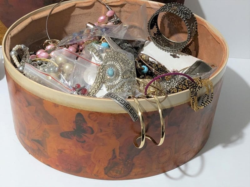ASSORTED COSTUME JEWELLERY IN HAT BOX5.4KgsCondition: Good - Refer To Images+24