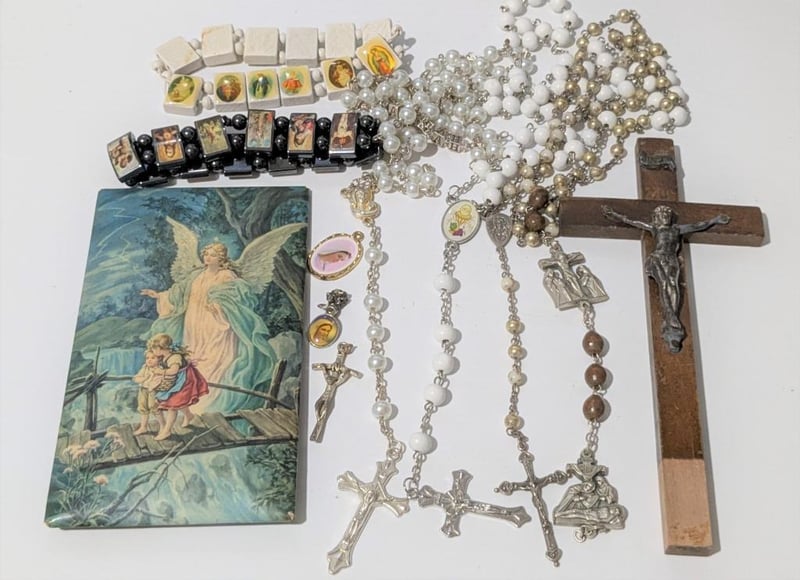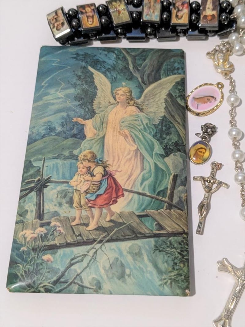 Includes Guardian Angel Metal Picture, Rosary Beads, Bracelets & Crucifix