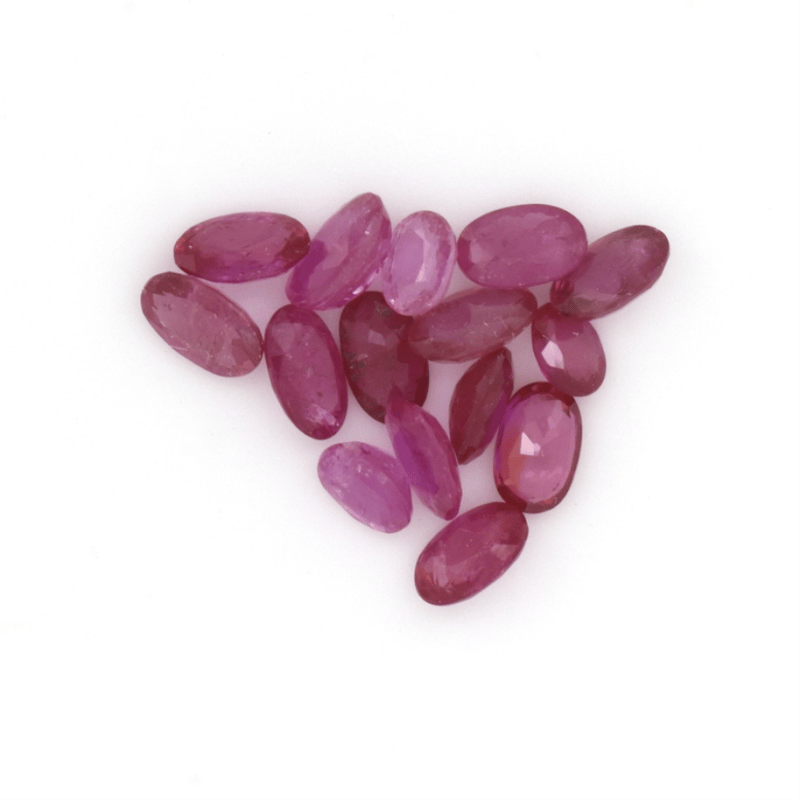 4.22CT TDW X 15, NATURAL CORUNDUM RUBIES Oval Faceted Cut, Medium-Deep Pinkish-Red, Moderate Eye Visible Inclusions, Enhanced, Loose, Unset. Jewellery Valuations Provided By A Third Party Professional Not Directly Associated With Lloyds Auctions at AUD $3,150.00This Insurance Valuation has been provided by a registered Jewellery Valuer and is intended for insurance purposes only. The valuation amount has no bearing on the auction value of the item. Any questions regarding the valuation should be directed to the issuing Valuer (refer to contact details on the certificate) as Lloyds have no association or relationship with the Valuer or the valuation amount contained within the valuation. Condition: NEW 0645894+2400