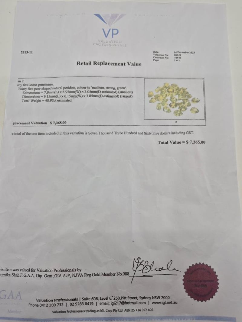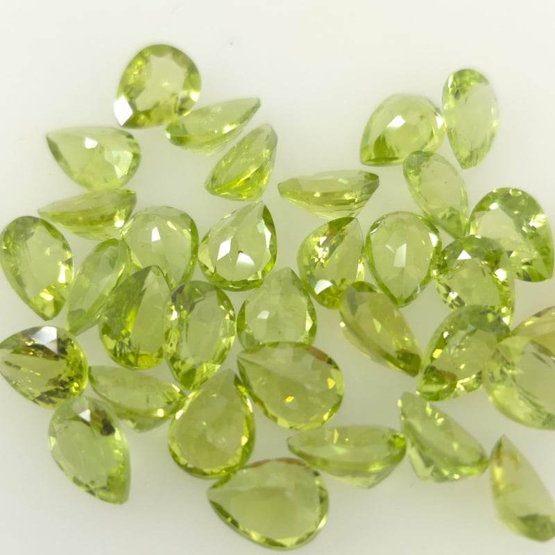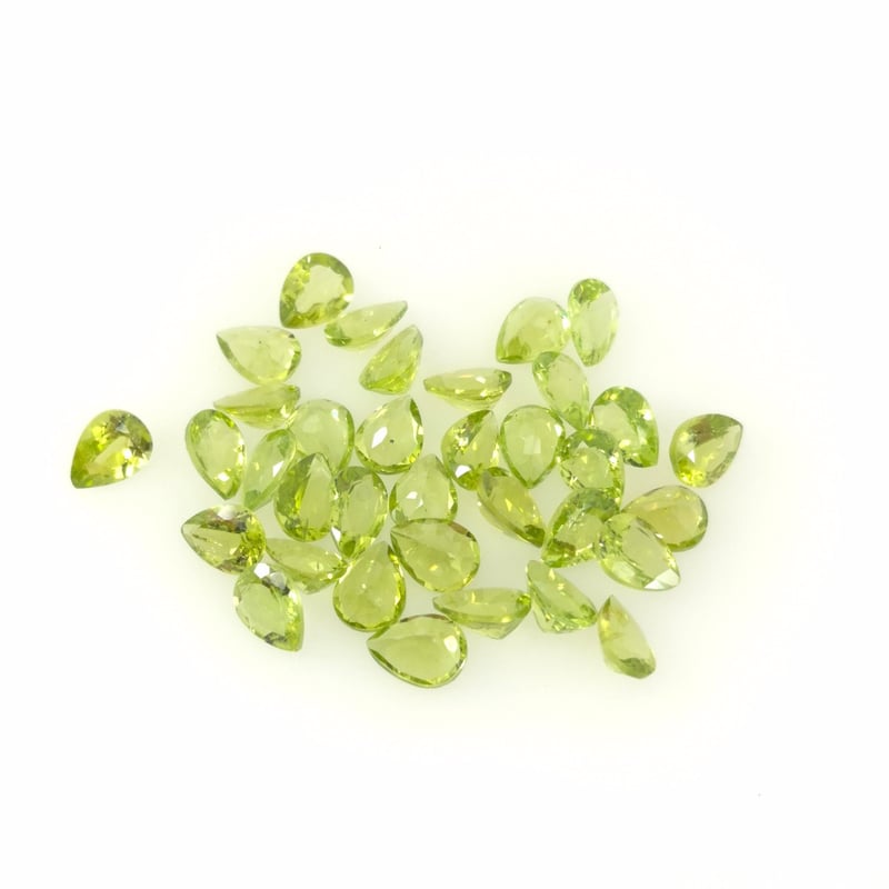 THIRTY FIVE PEAR SHAPED NATURAL PERIDOTS