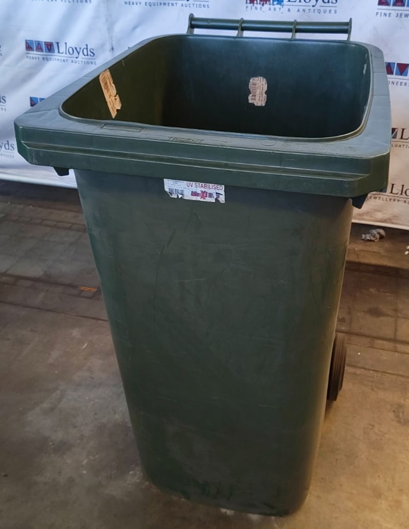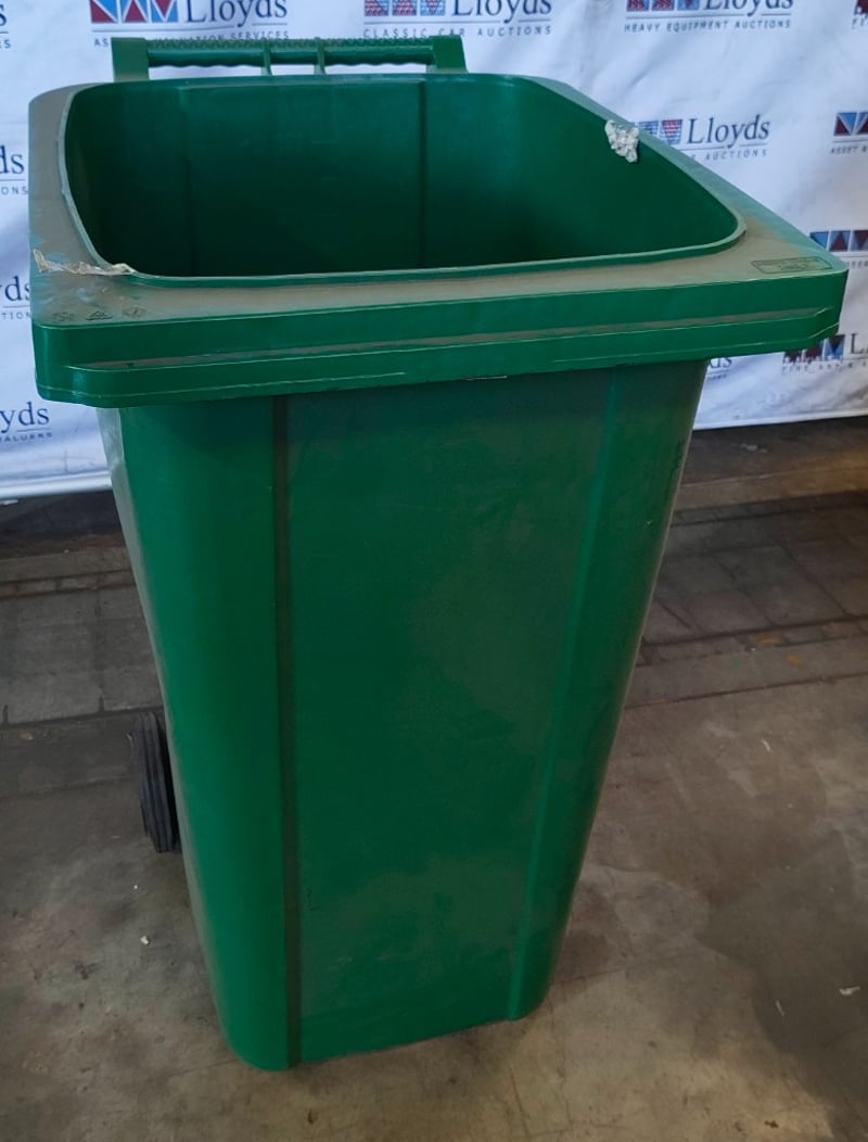 Assortment pallet of green plastic wheelie binsDimensions: 57cm (W) x 72cm (H) x 100cm (D)QTY: 4Note: Inspection recommended, no lidsSold as lot
