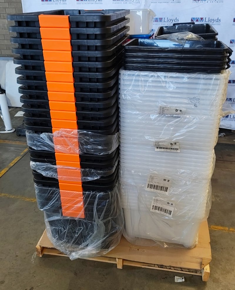 Note: missing lids, missing handles, some corner damages, inspection recommended