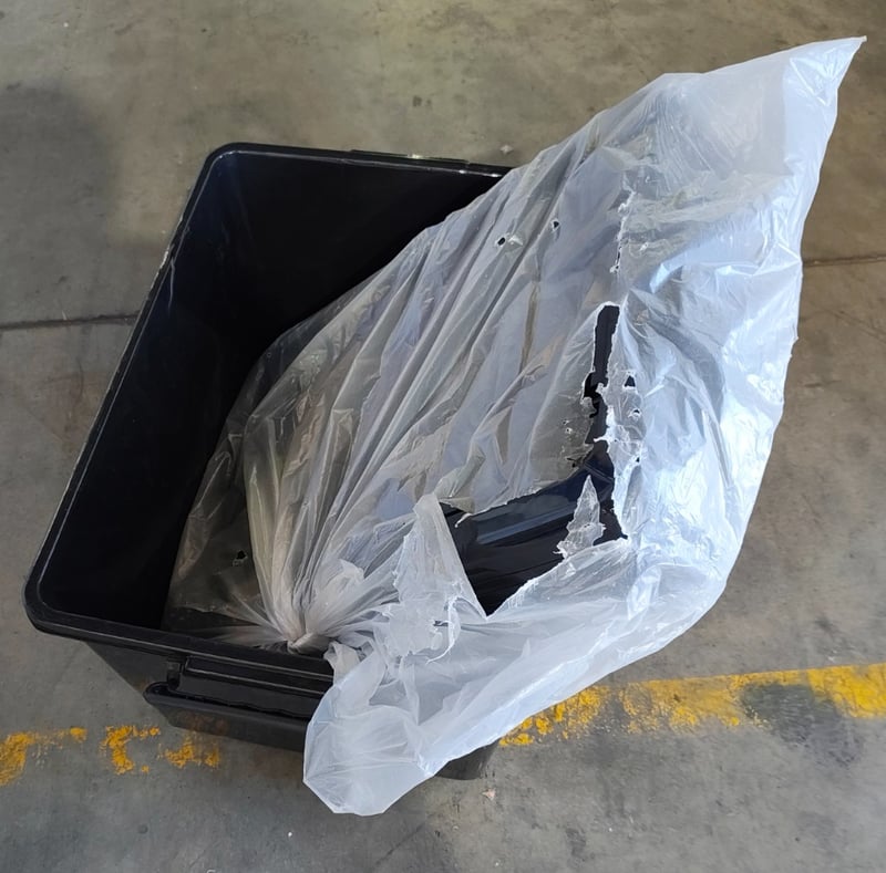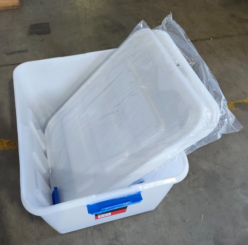 Note: missing lids, missing handles, damage possible, inspection recommended