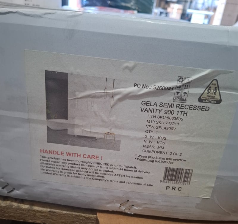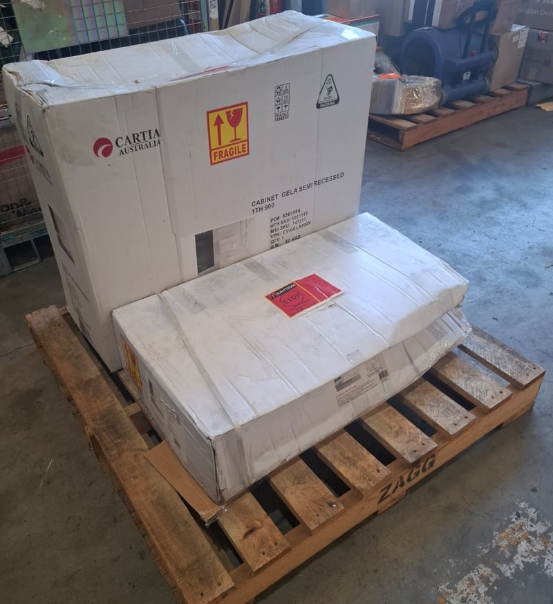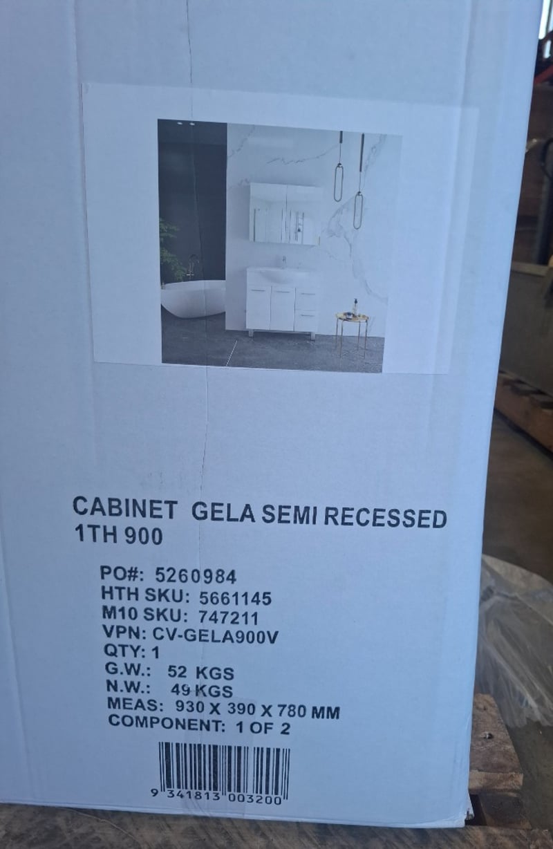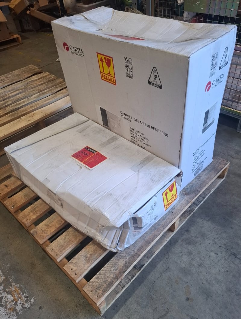 1 x Pallet of Semi-Recessed Vanity and Cabinet. Note: Boxes show rips and tears. Inspection Recommended Sold As Lot