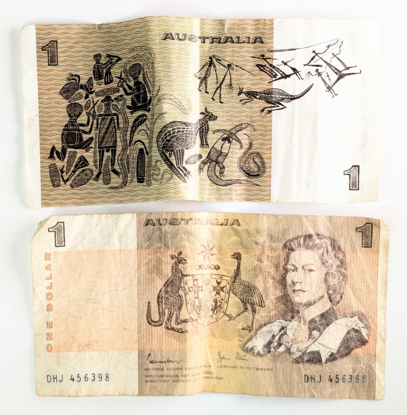 ASSORTED AUSTRALIAN CURRENCY PENNY, COINS AND NOTES. 64 PIECES.