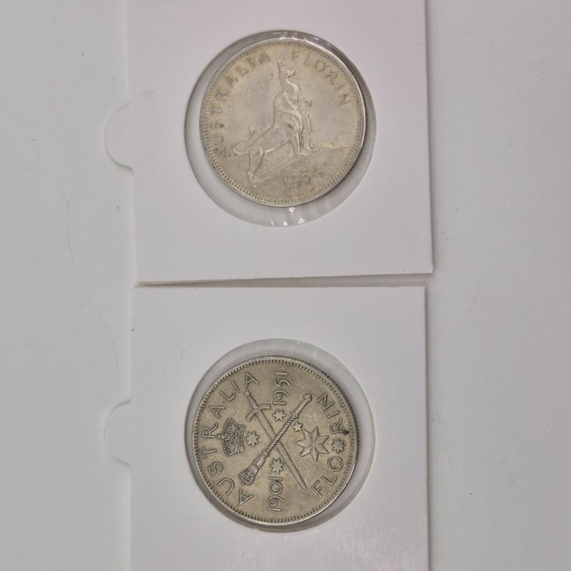 AUSTRALIAN COIN Two Australian 1951 & 1954 Silver Florin Coin. Condition: High Grade 587658+182