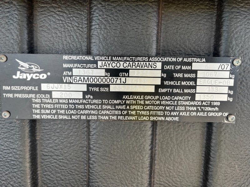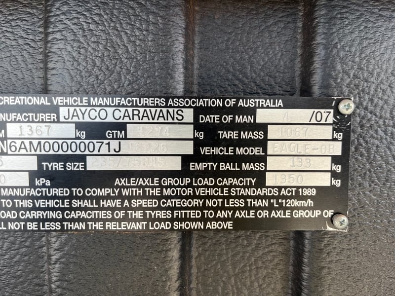 2007 Jayco Eagle Pop up CamperYear: 2007 Make: JaycoModel: EagleVin: 6AM00000071J16126Colour: WhiteATM: 1367 kgsGTM: 1274 kgsTARE: 1067 kgsEBM: 133 kgsTravel Length: 4m + 1360mm Draw Bar = 5.36mTravel Width: 1260mmTravel Height: 1870mmDescription: New screens all round, New kings fridge, New dual batteries, Kings Solar panel, TV, Water tankLocation: 3/263 Connors road, Paget, Mackay, 4070Contact: Bradley Taylor - 0473425094 - [email protected]