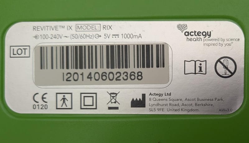 Revitive circulation booster model RIX with power adapter and sensor pads