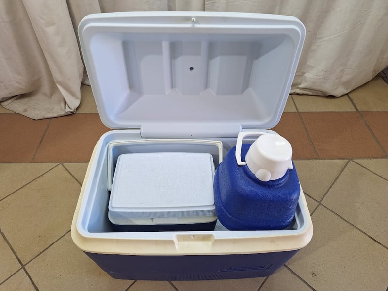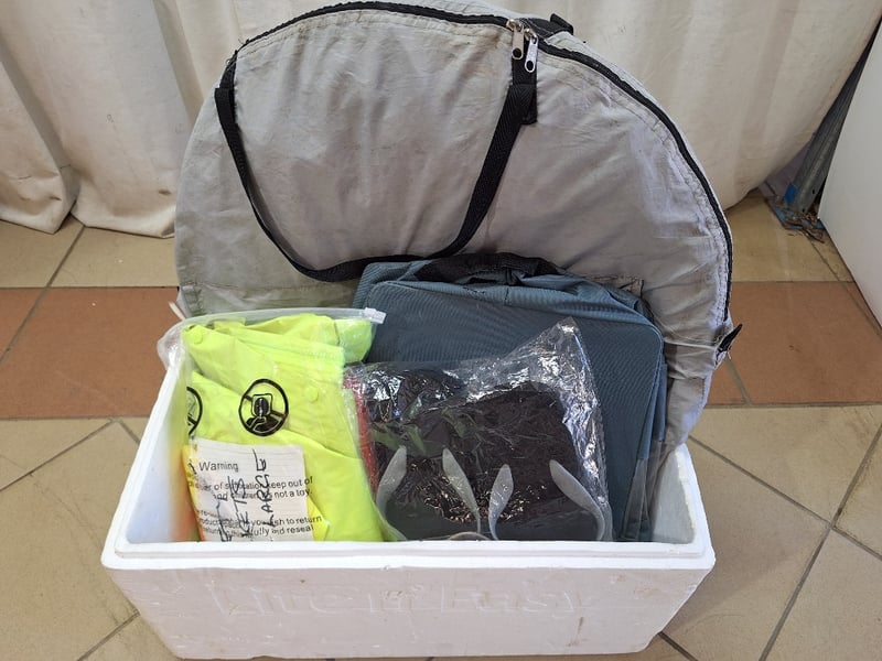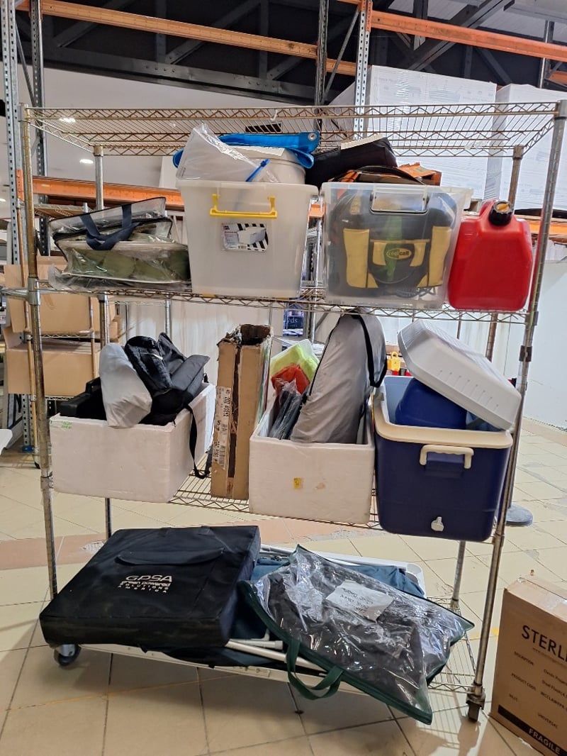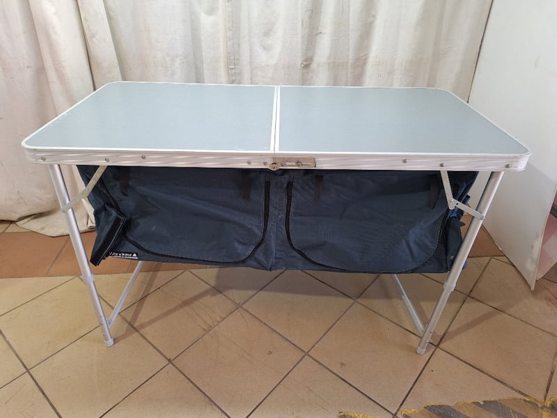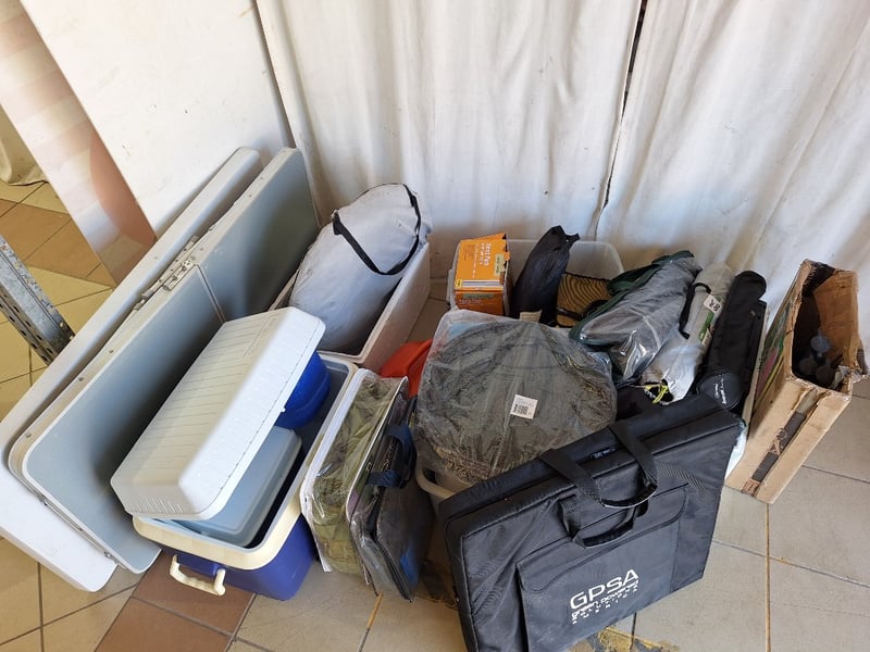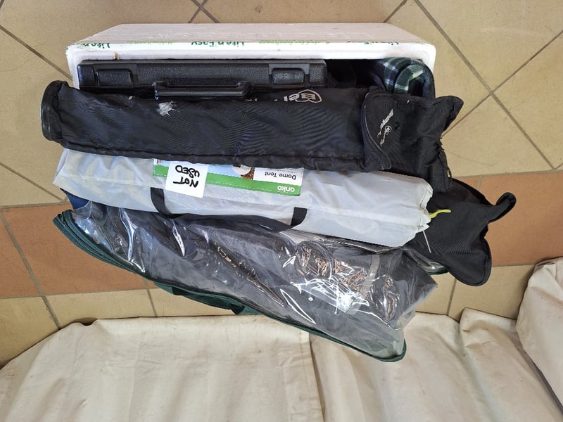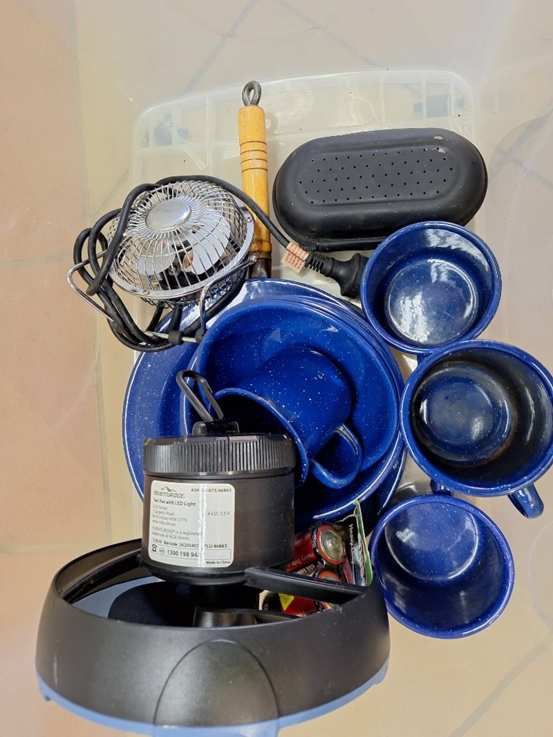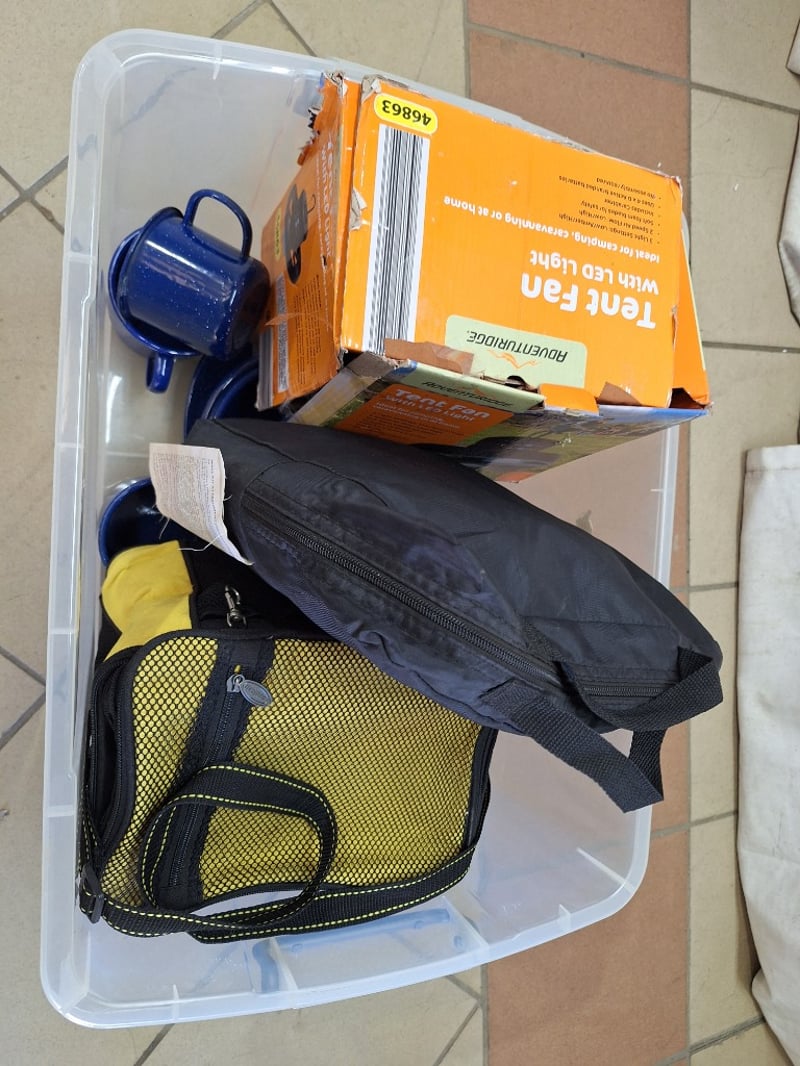 Assorted Camping Lot2x Tables, Solar Panel In Bag, Small & Large Esky, Small Tent, Fan, Portaloo & MoreSOLD AS LOT, RACK NOT INCLUDED