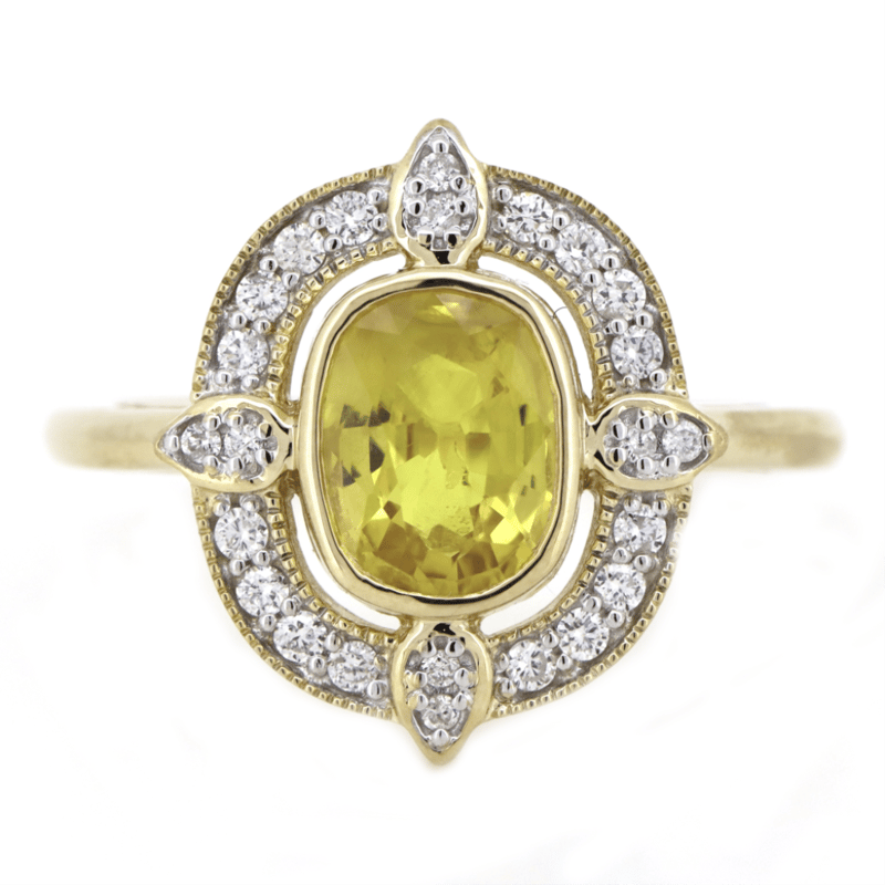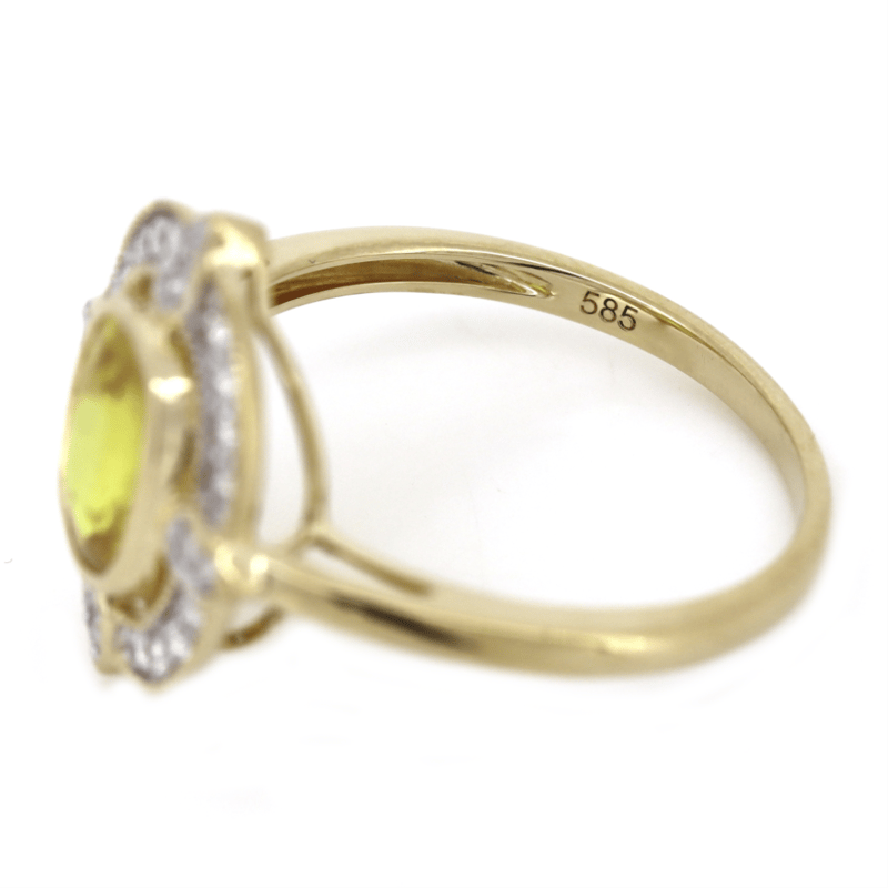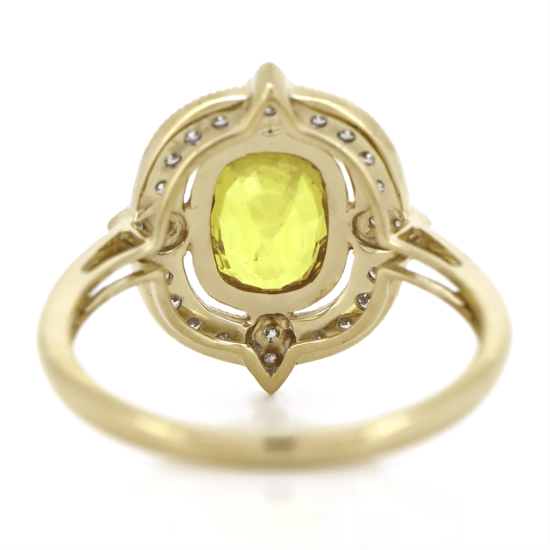 14K YELLOW GOLD, YELLOW SAPPHIRE AND DIAMOND, HALO RING. The Centre Features, One Oval Cut, Yellow Sapphire (1.78Ct, Light Natural Inclusions), Bezel Set. Encompassing The Centre Are, 24 Round Brilliant Cut, Diamonds (0.20Ct Tdw, H Colour, Si Clarity), Bead Set. Ring Size O. Jewellery Valuations Provided By A Third Party Professional Not Directly Associated With Lloyds Auctions at AUD $$10,000.00This Insurance Valuation has been provided by a registered Jewellery Valuer and is intended for insurance purposes only. The valuation amount has no bearing on the auction value of the item. Any questions regarding the valuation should be directed to the issuing Valuer (refer to contact details on the certificate) as Lloyds have no association or relationship with the Valuer or the valuation amount contained within the valuation. Condition: NEW 0645882+63