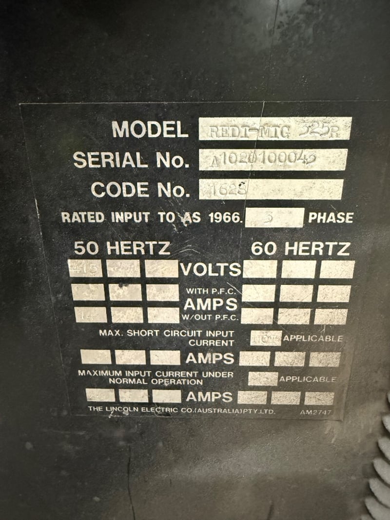 Welding Machine, Lincoln Redi-Mig 325R, SN-1020100045, includes Matt and connections Quantity-1