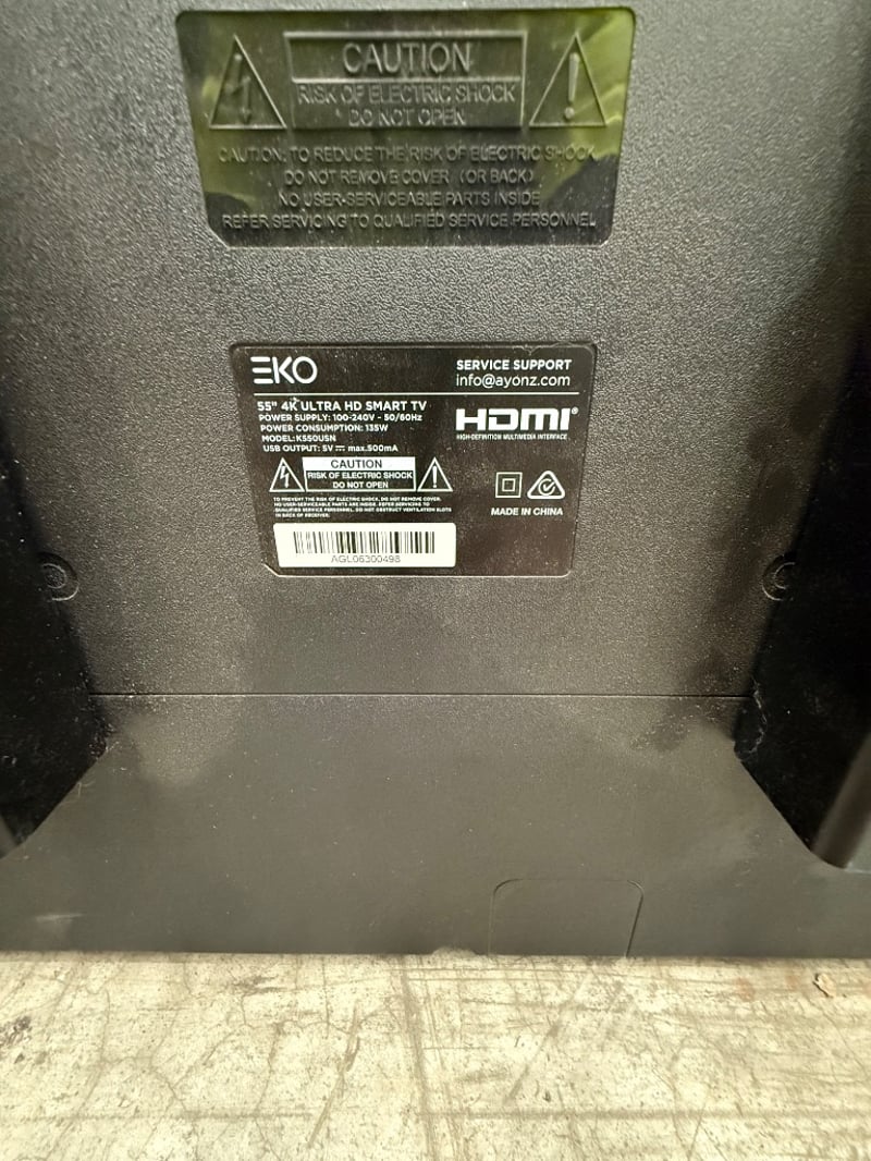 TV, EKO 55” 4K Ultra HD Smart Television, no stand, no power cables