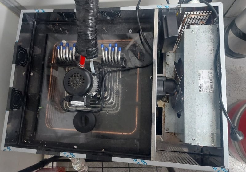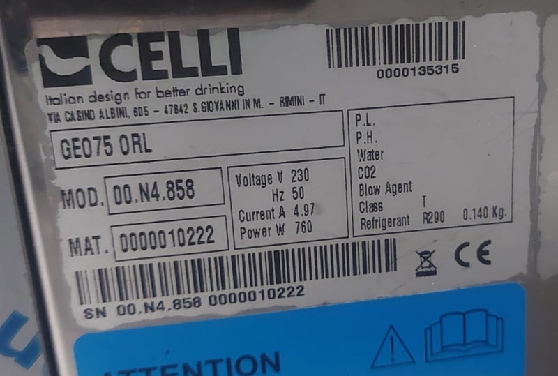 Powerful inline Celli GEO75 ORL glycol chiller (3/4 HP, approx. 35kg ice bank for reliable high-volume cooling)