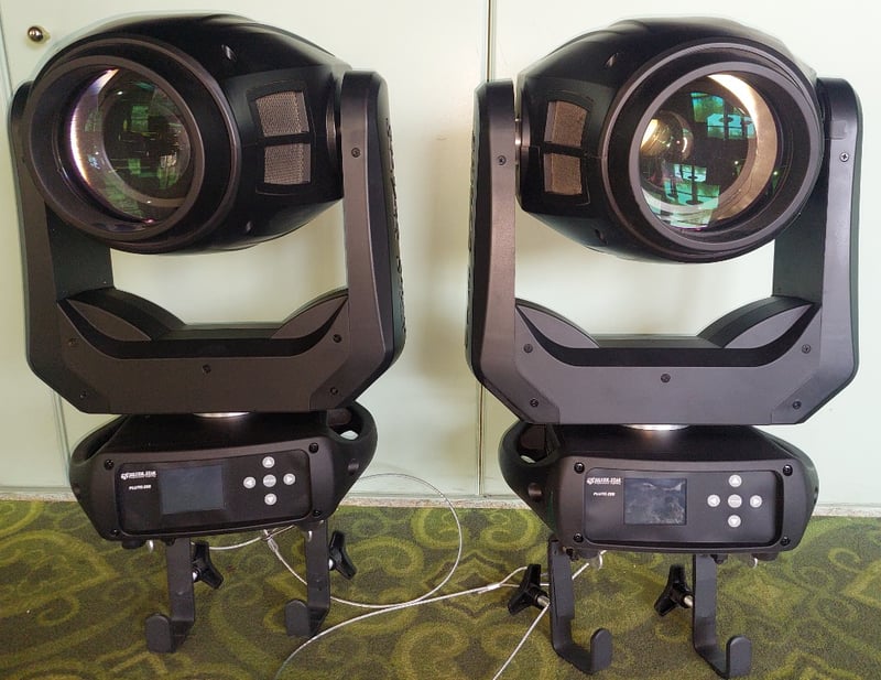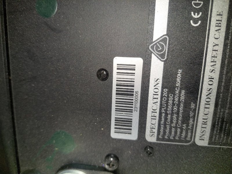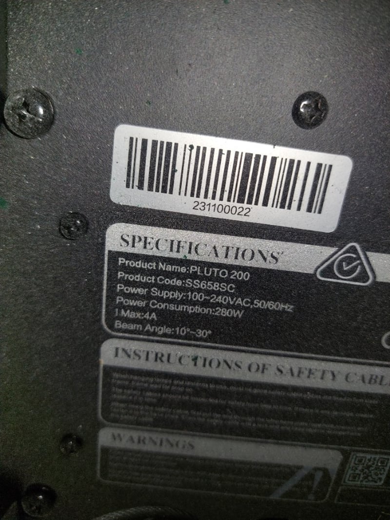 Silverstar moving head stage light.Model: Pluto 200Serial number: 231100006, 231100022Note: items is untested, signs of wear.