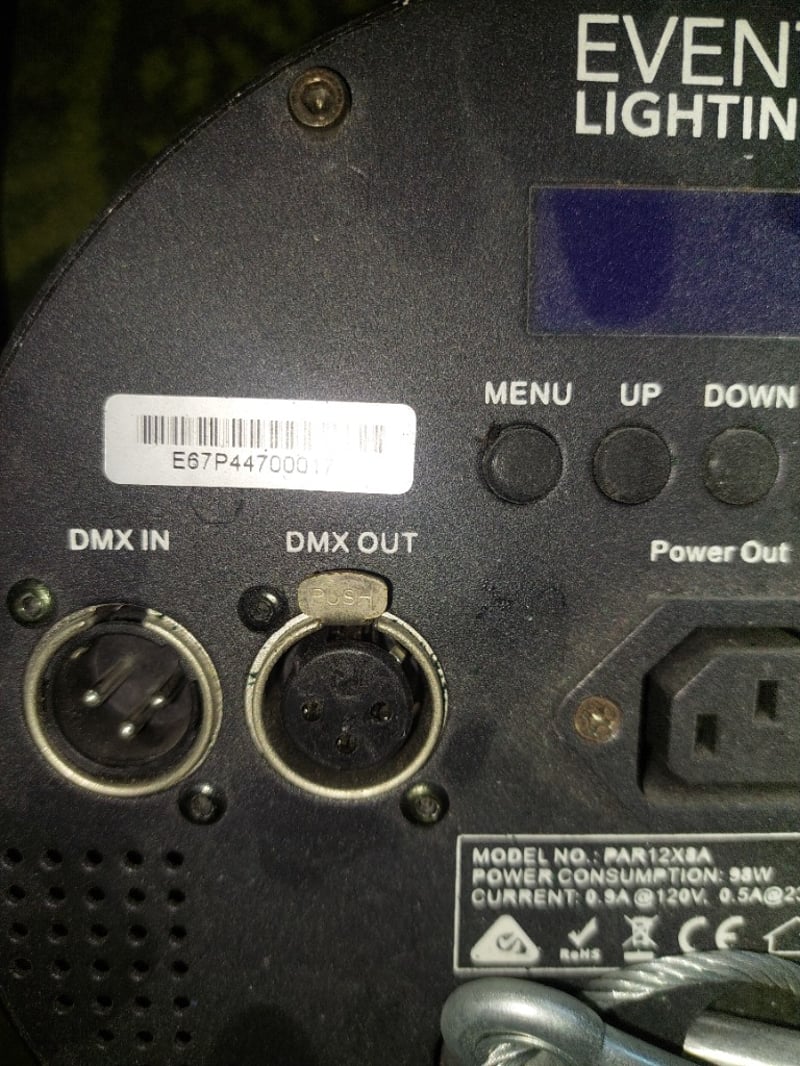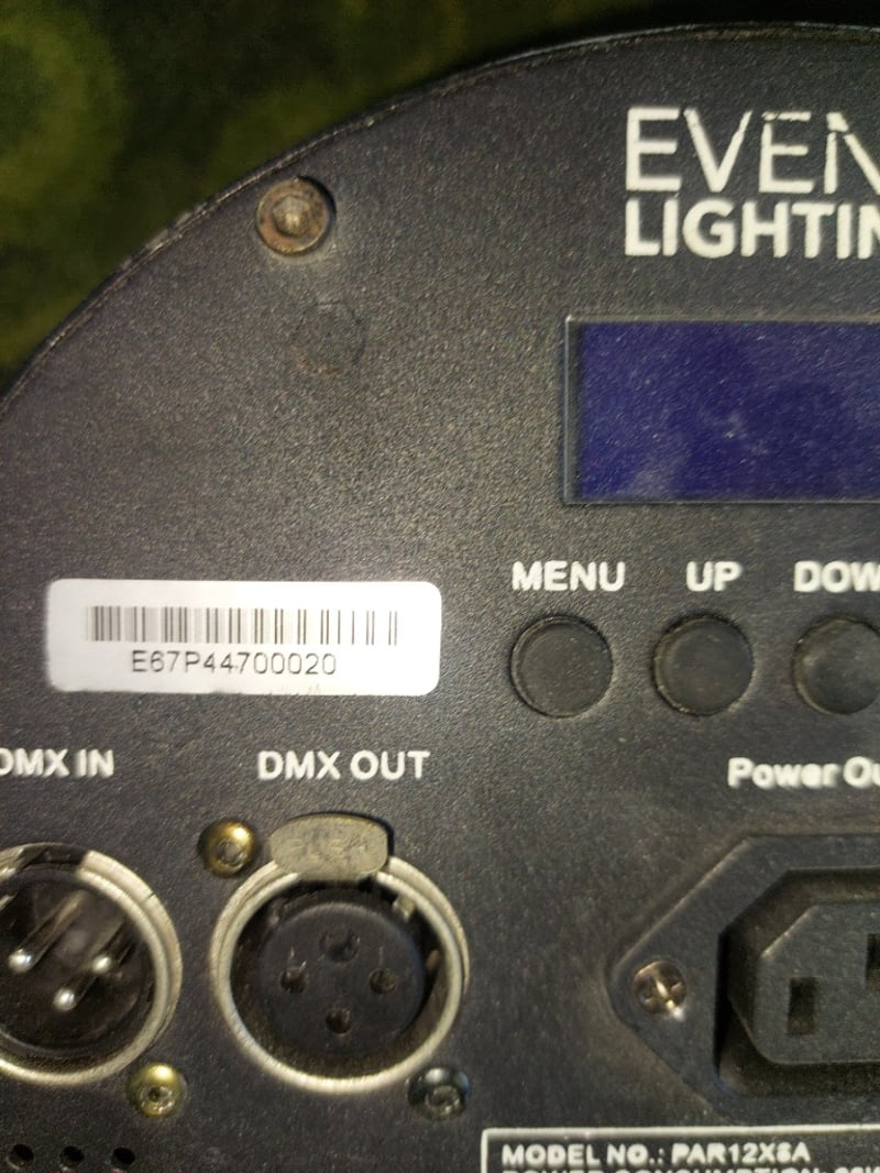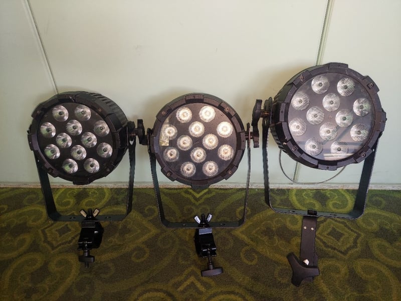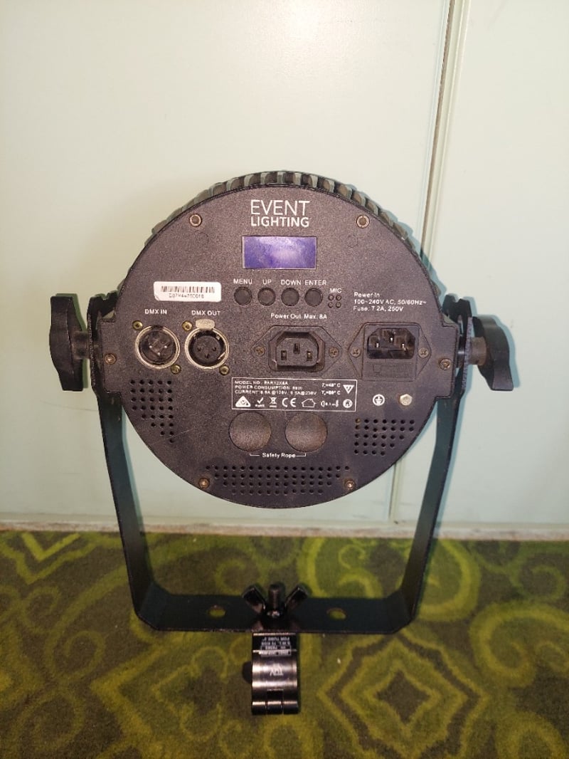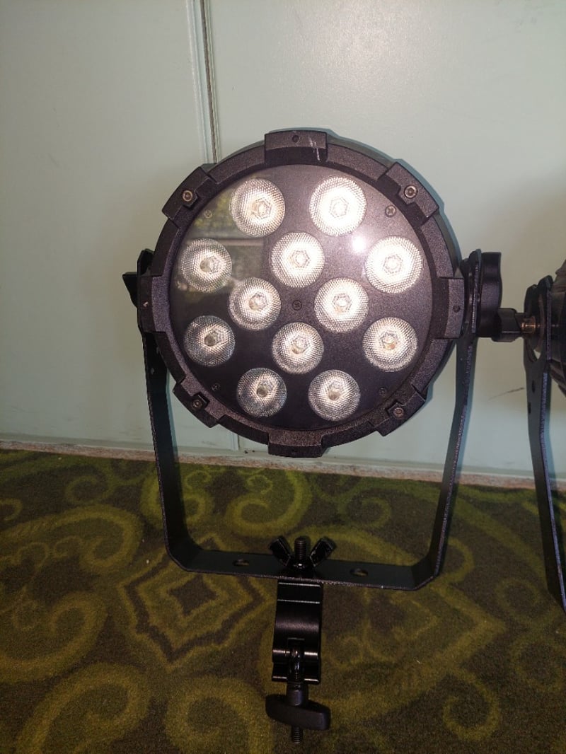 Event lighting LED stage lights.Qty: 3 per lot.Model:PAR12X8ASerial number: E67P44700018, E67P44700017, E67P44700020Note: items are untested, signs of wear.