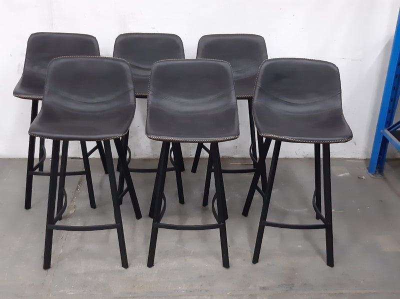 6 x stools, Matte Leather Style, Black Finish with beige stitching.Dimensions: H80cm x 40cm x 40cmSOLD AS LOT