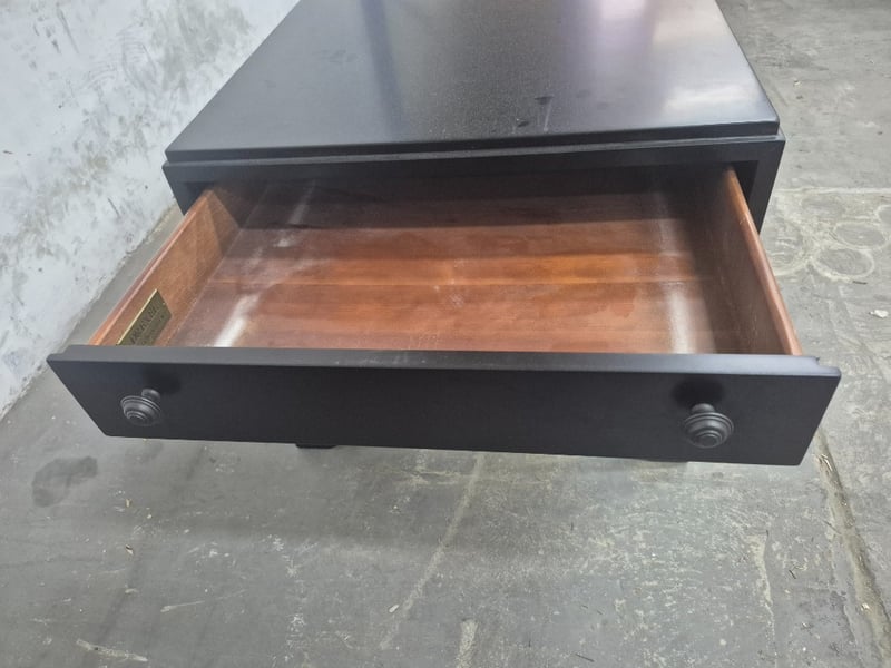 Coffee Table, Side Drawers, Black Timber FinishDimensions: L120 x W60 x H55 cm