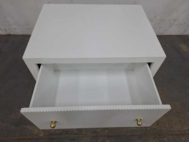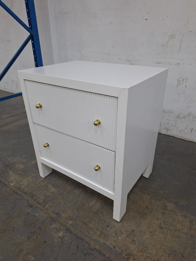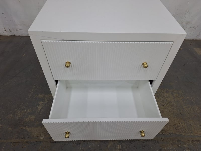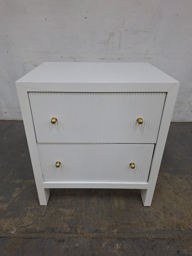 Side Table With 2 Drawers, Timber Style, White Finish With Gold Finish Handles Dimensions H:76cm W:78cm D:50cm