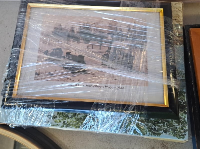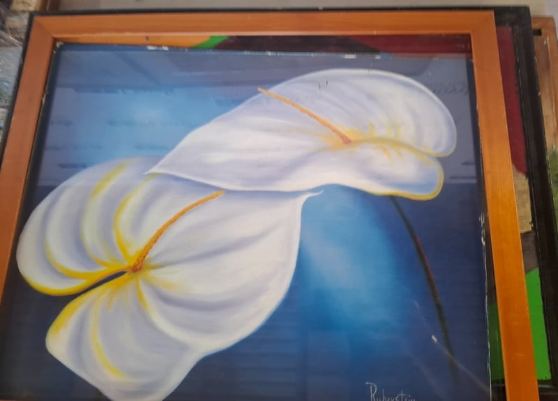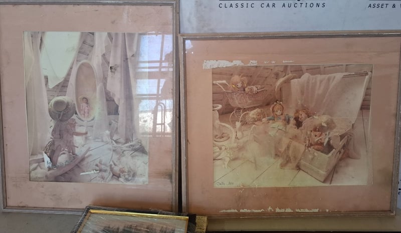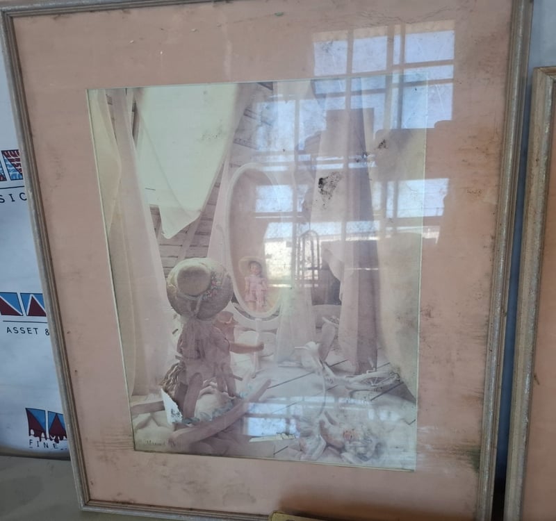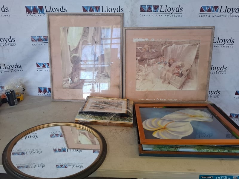 Assorted Lot of Paintings and Prints with a Medium Oval Mirror. Wear and Tear on items, Some Cleaning May Be Required. Sold As Lot