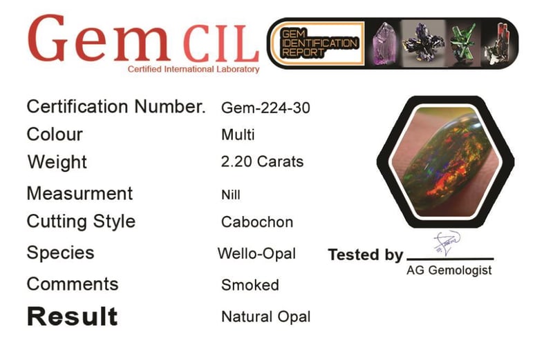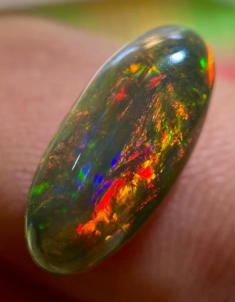 2.20 CARATS NATURAL WELLO-BLACK OPAL 2.20 Carats Natural Wello-Black OpalStone = OpalWeight = 2.20 CaratsColour = Multi-Colour Treatment = SmokedCut = Cabochon Note = Picture Taken Under Light. 0+30
