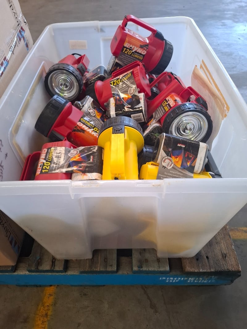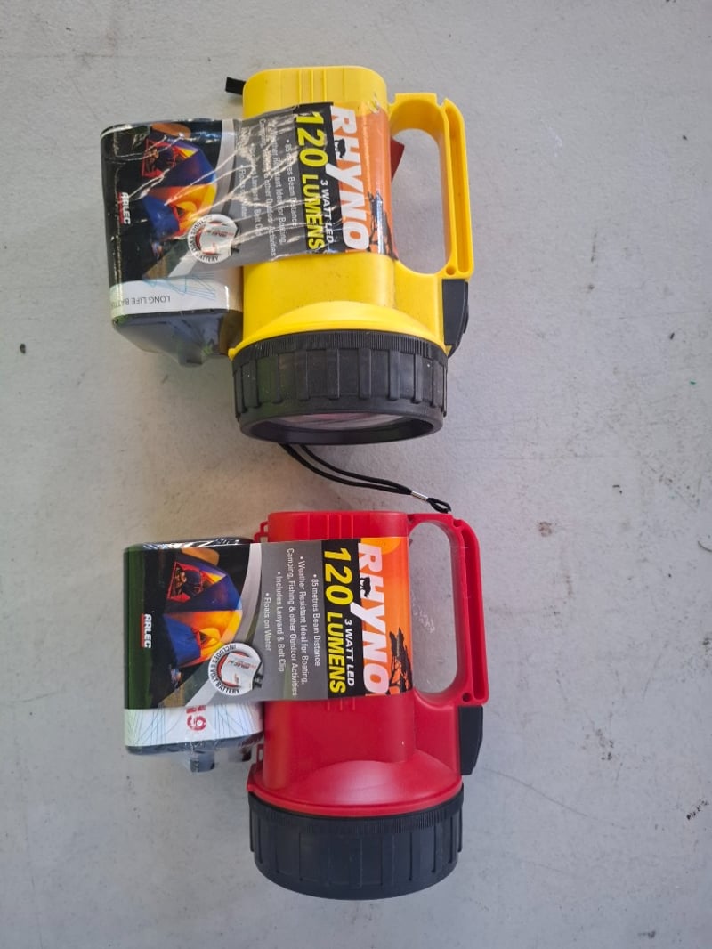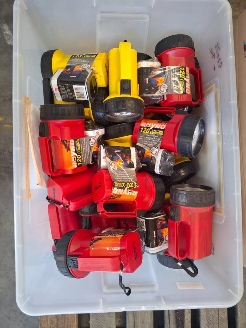 1 x Plastic Container of Rhyon Torches 120 Lumens, most with battery attached. Inspection Recommended Sold As Lot