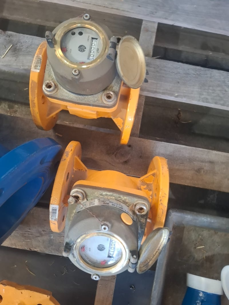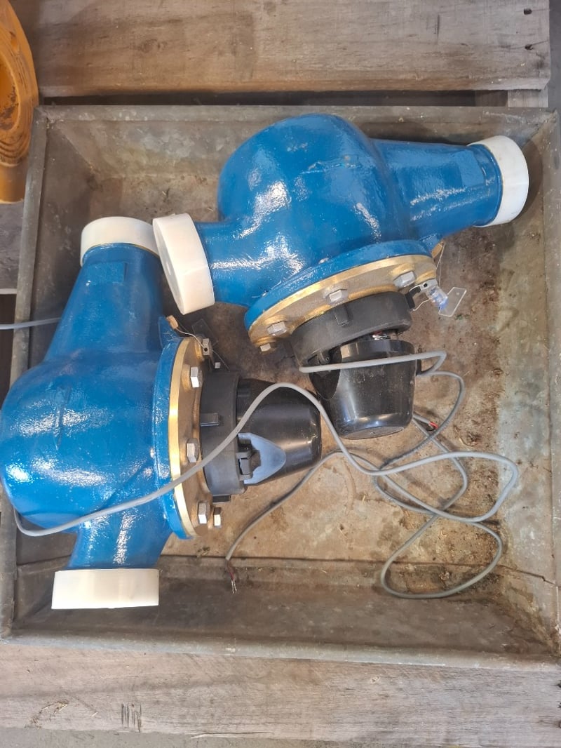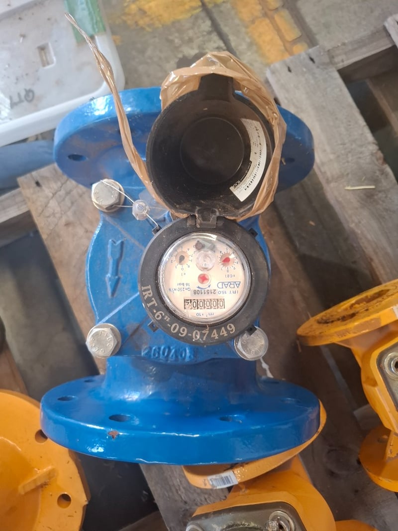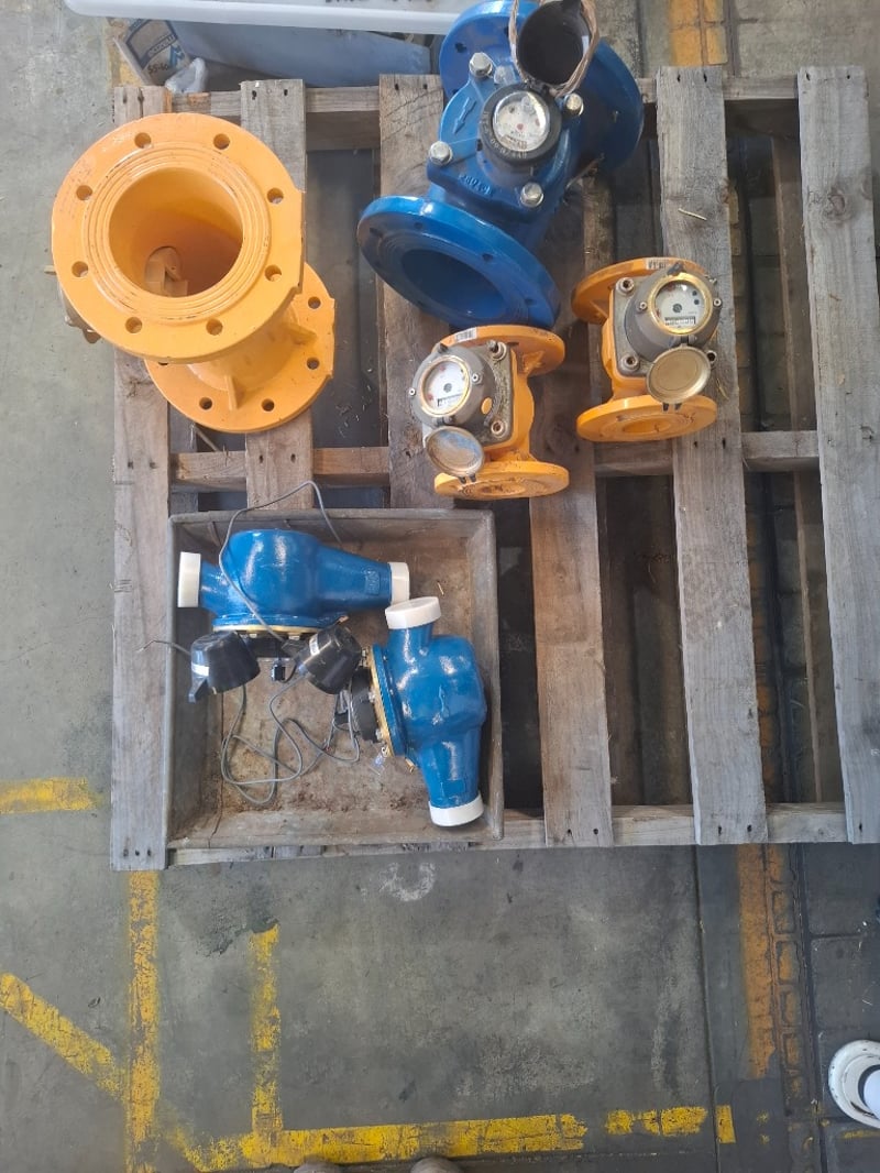 Assorted Pallet with 2 x Griswold centrifugal pumps, 2 x Elster 50mm V300 volumetric meter. 1 x flanged ball check valve and a ARAD IRT-6"-09-07449 Woltman-type water meter. Inspection Recommended Sold As Lot