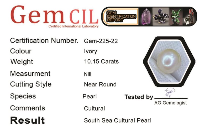 10.15 CARATS SOUTH SEA PEARL 10.15 Carats South Sea Pearl Stone = South Sea Pearl Weight = 10.15 Carats Treatment = CulturalQuantity = 1Note = Gem Cil, Certified, Condition: Good 0+22
