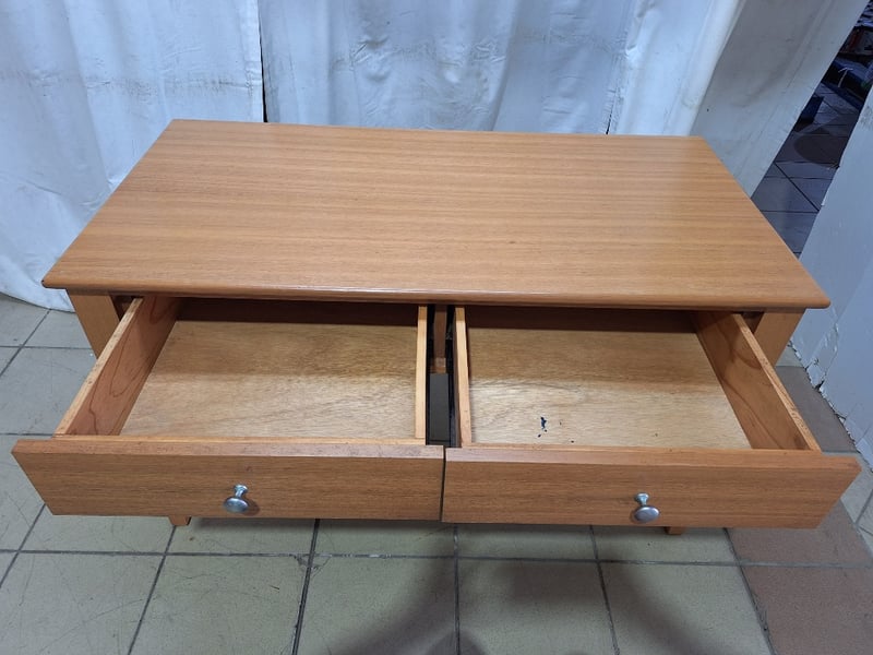 Coffee Table With 2 Drawers, Timber Style, Natural FinishDimensions H:71cm W:121cm D:60cm