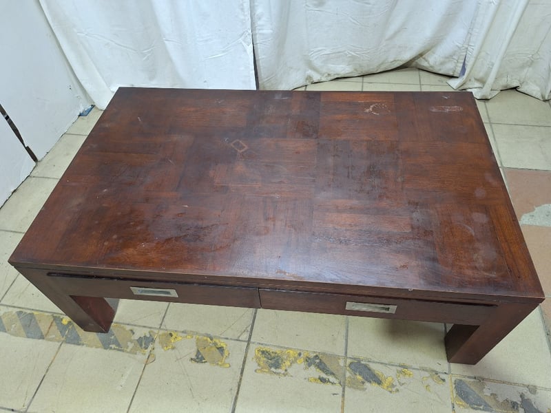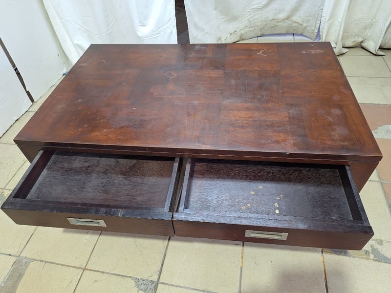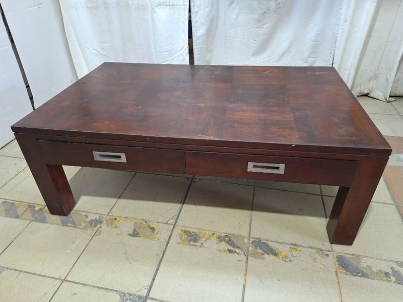 Coffee Table With 2 Drawers, Timber Style, Brown FinishDimensions H:45cm W:127cm D:77cm