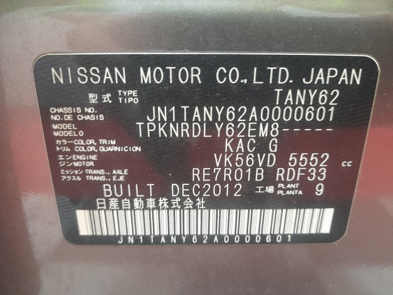 VIN: JN1TANY62A0000601