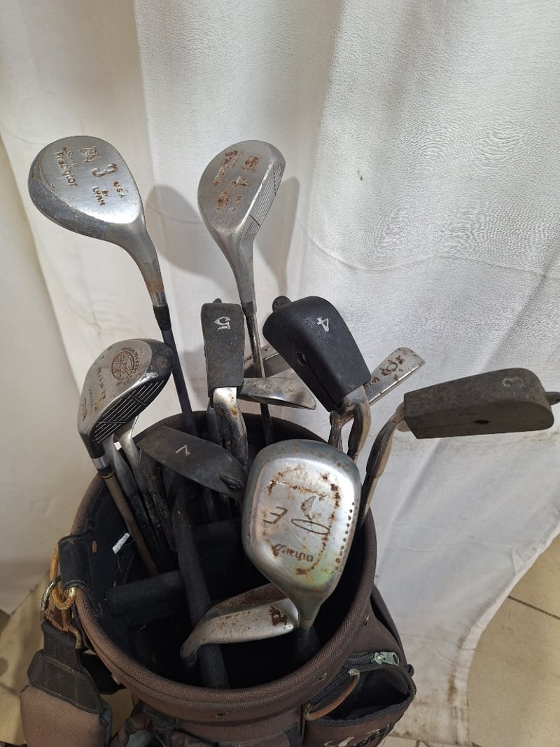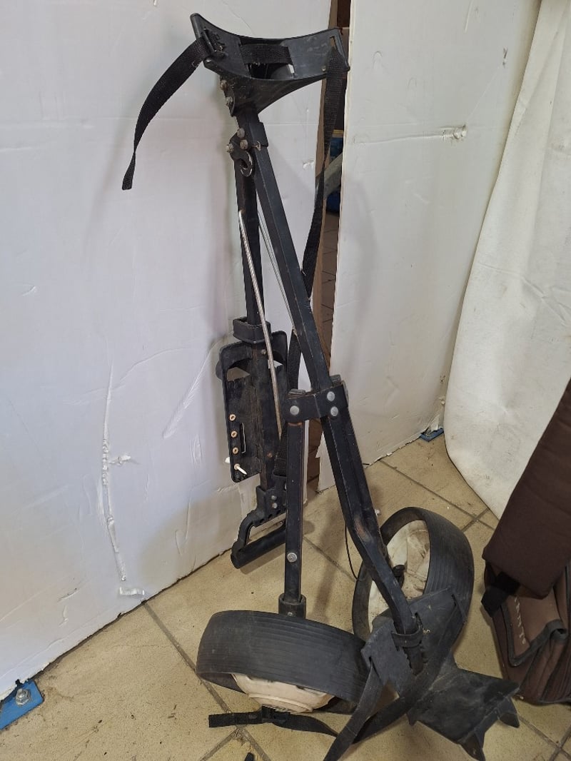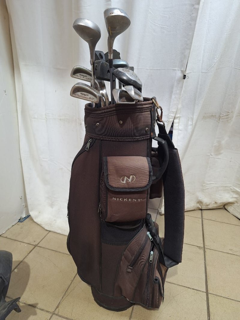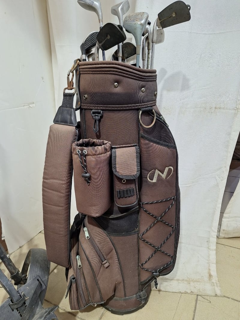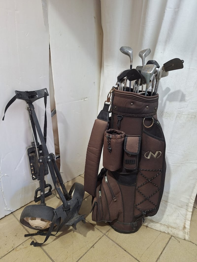 Nickent Golf Bag With Clubs & Golf Push Cart, Brown & Black FinishDimensions Bag H:89cm W:27cm D:35cmSOLD AS LOT