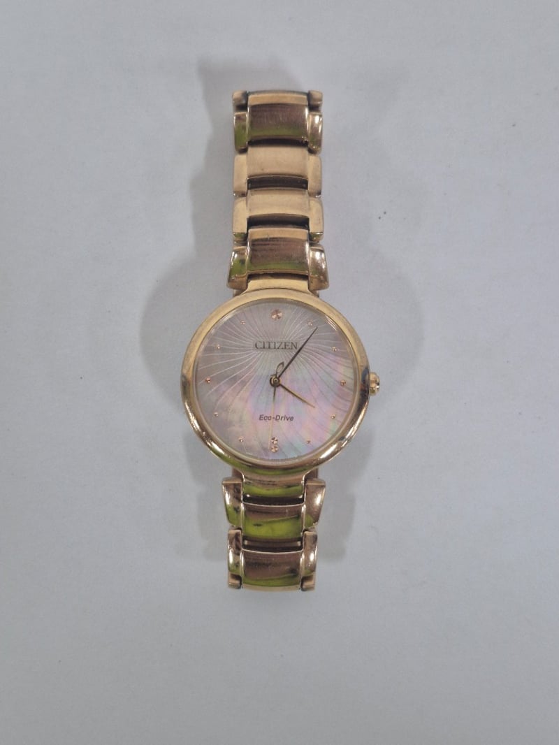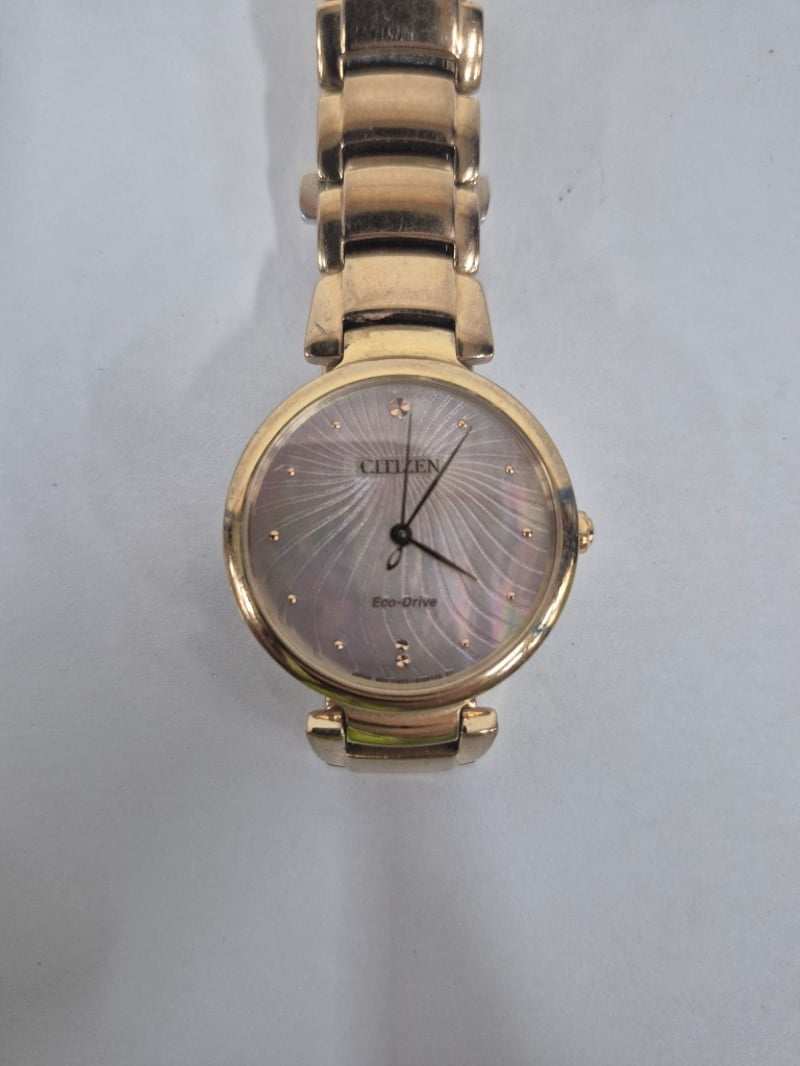 Gold style watch with mother of pearl face