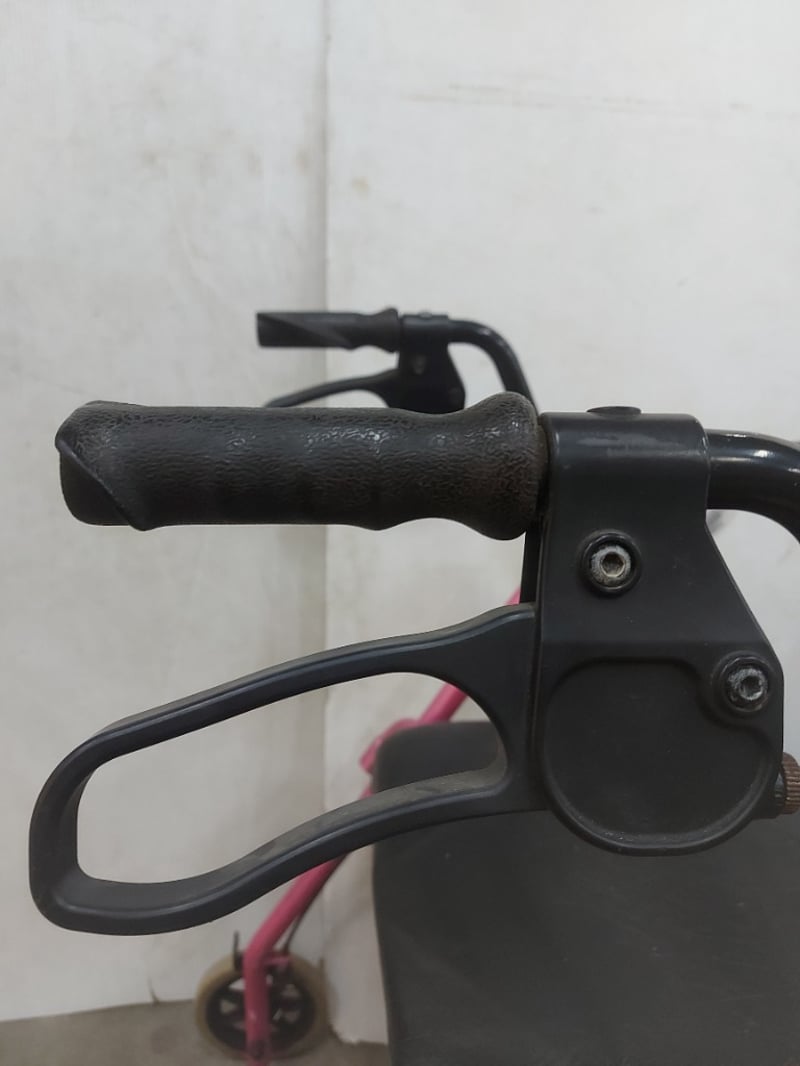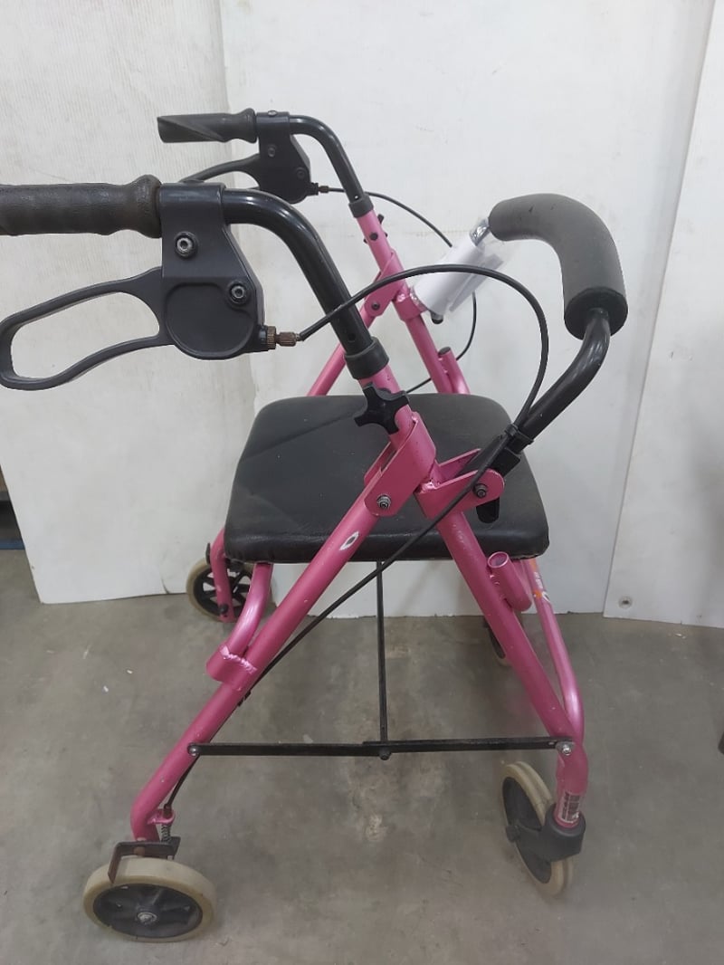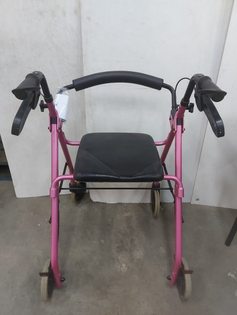 Pink rolling walking frame