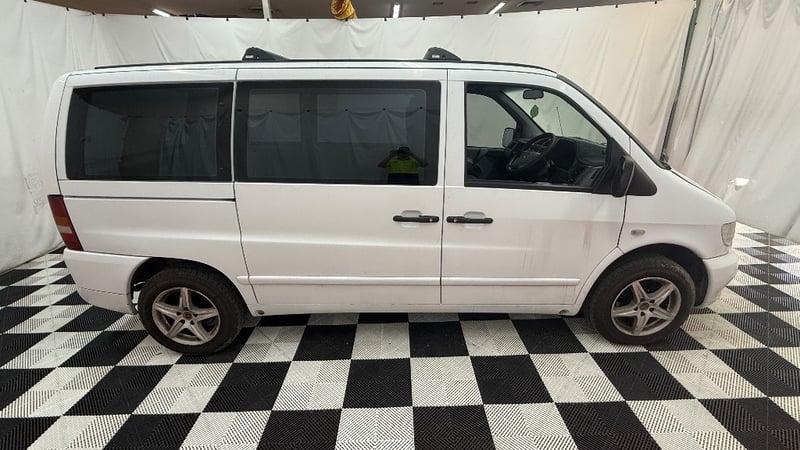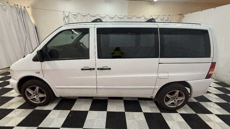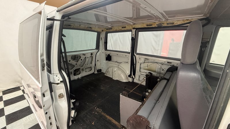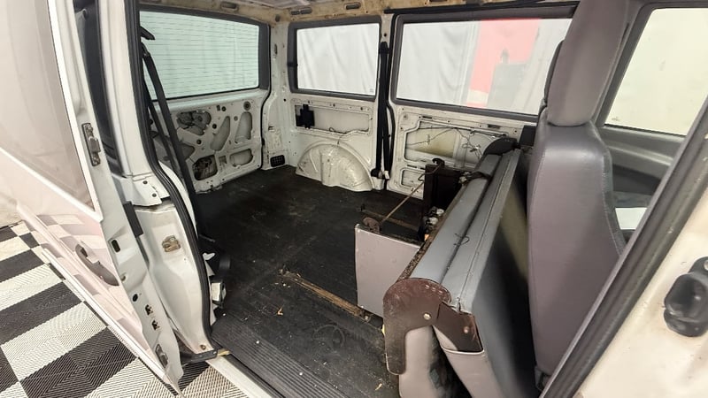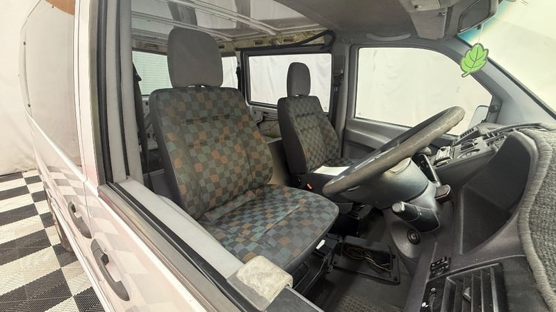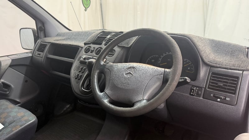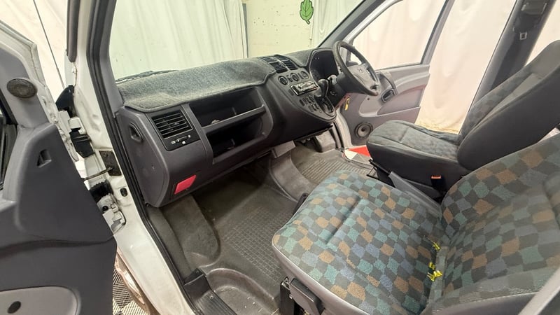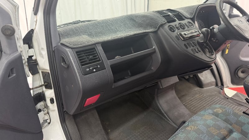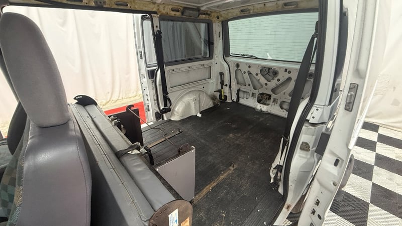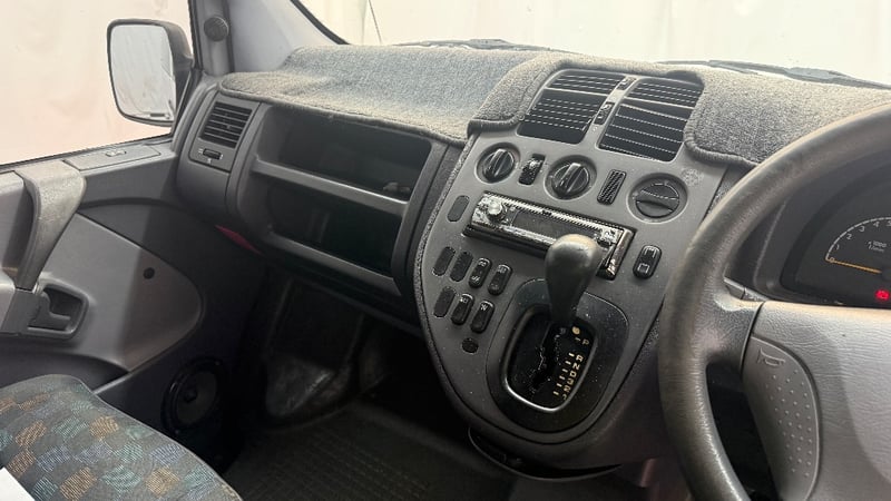 Description/extras: Air Conditioning, Power windows. Weathered and faded exterior paint finish, minor corrosion visible on trim components, upholstery wear to driver seat and armrests, faded dashboard due to sun exposure, worn steering wheel surface, scuffed interior door panels, visible dust and minor dirt accumulation throughout cabin, oxidised rear light lenses, surface rust on cargo floor. Inspection recommended. smoke coming from engine bay.